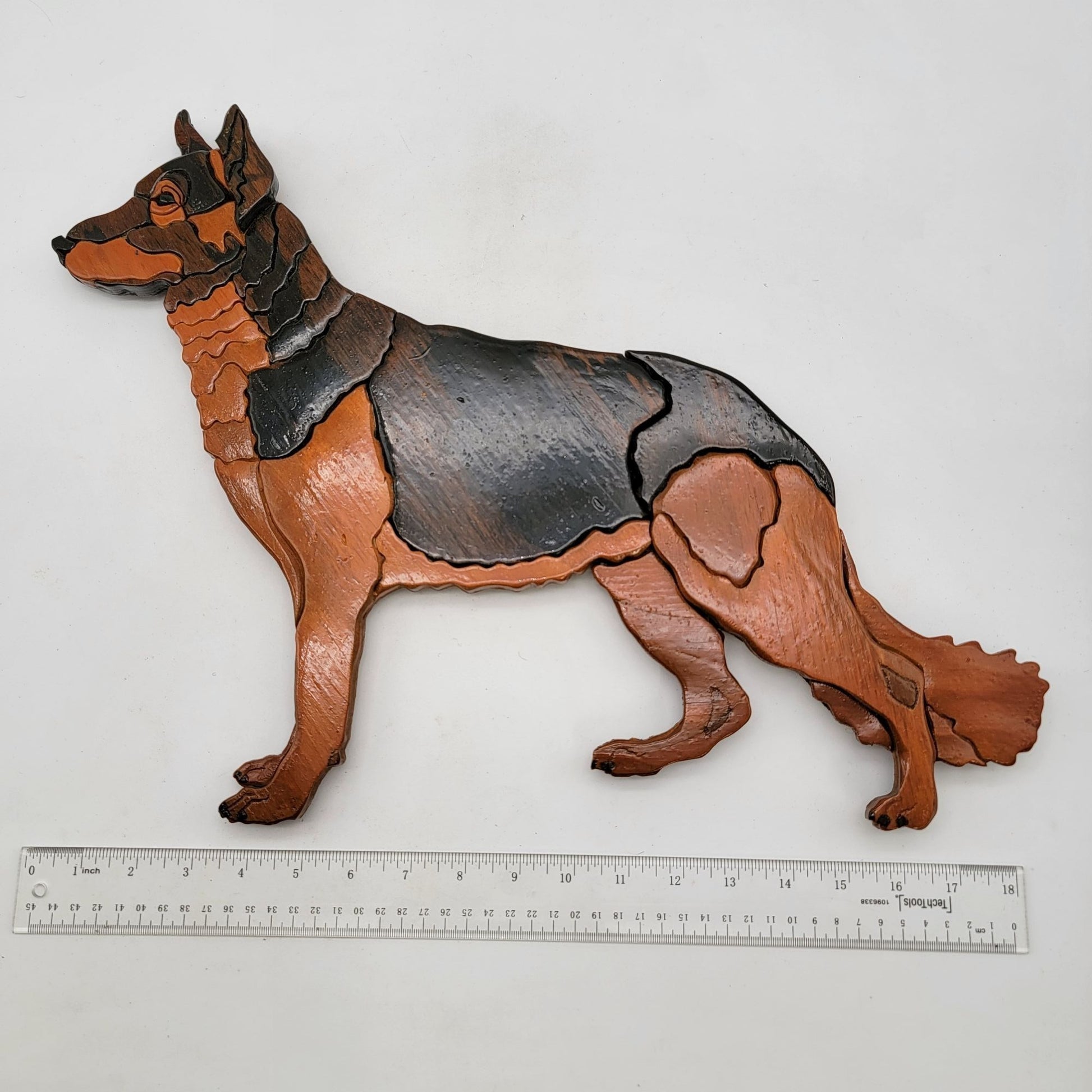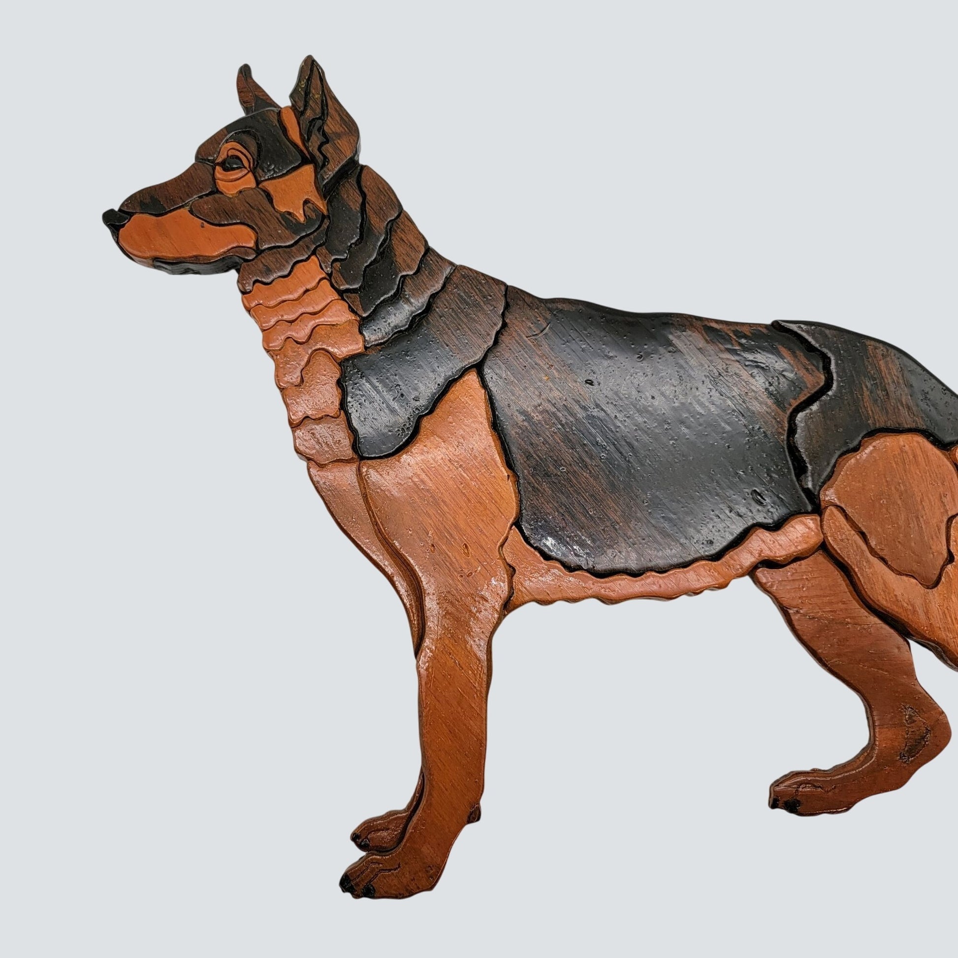 Vintage Intarsia Wood German Shepherd Wall Art