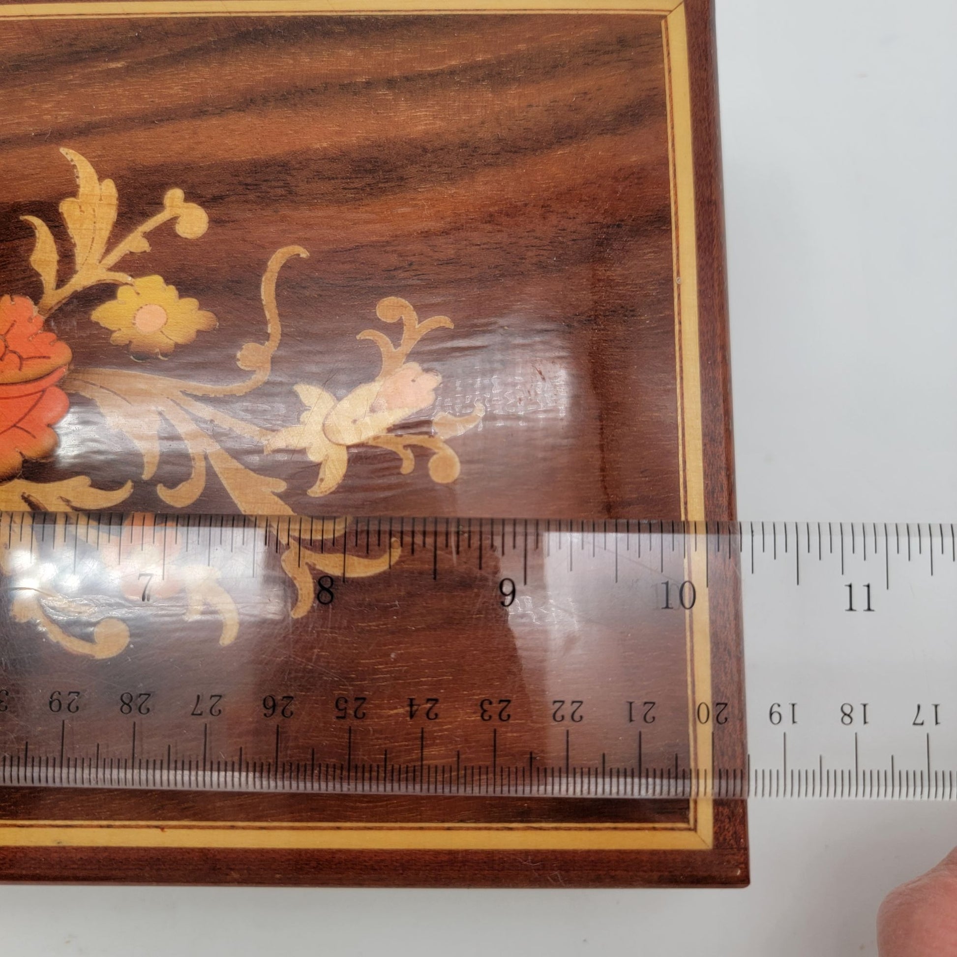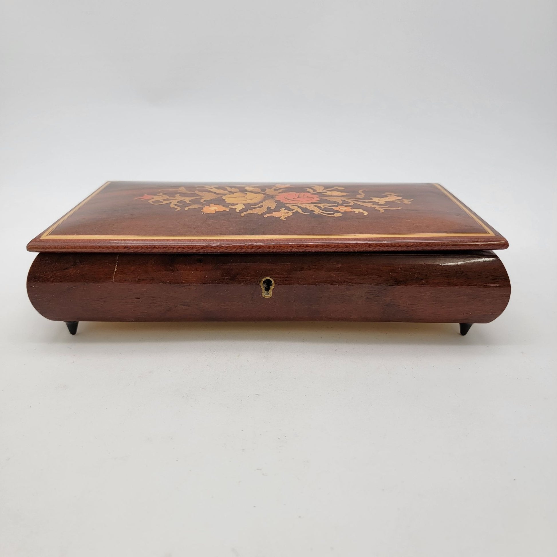 Vintage Italian Sorento Reuge Wooden Footed Floral Music Jewelry Box