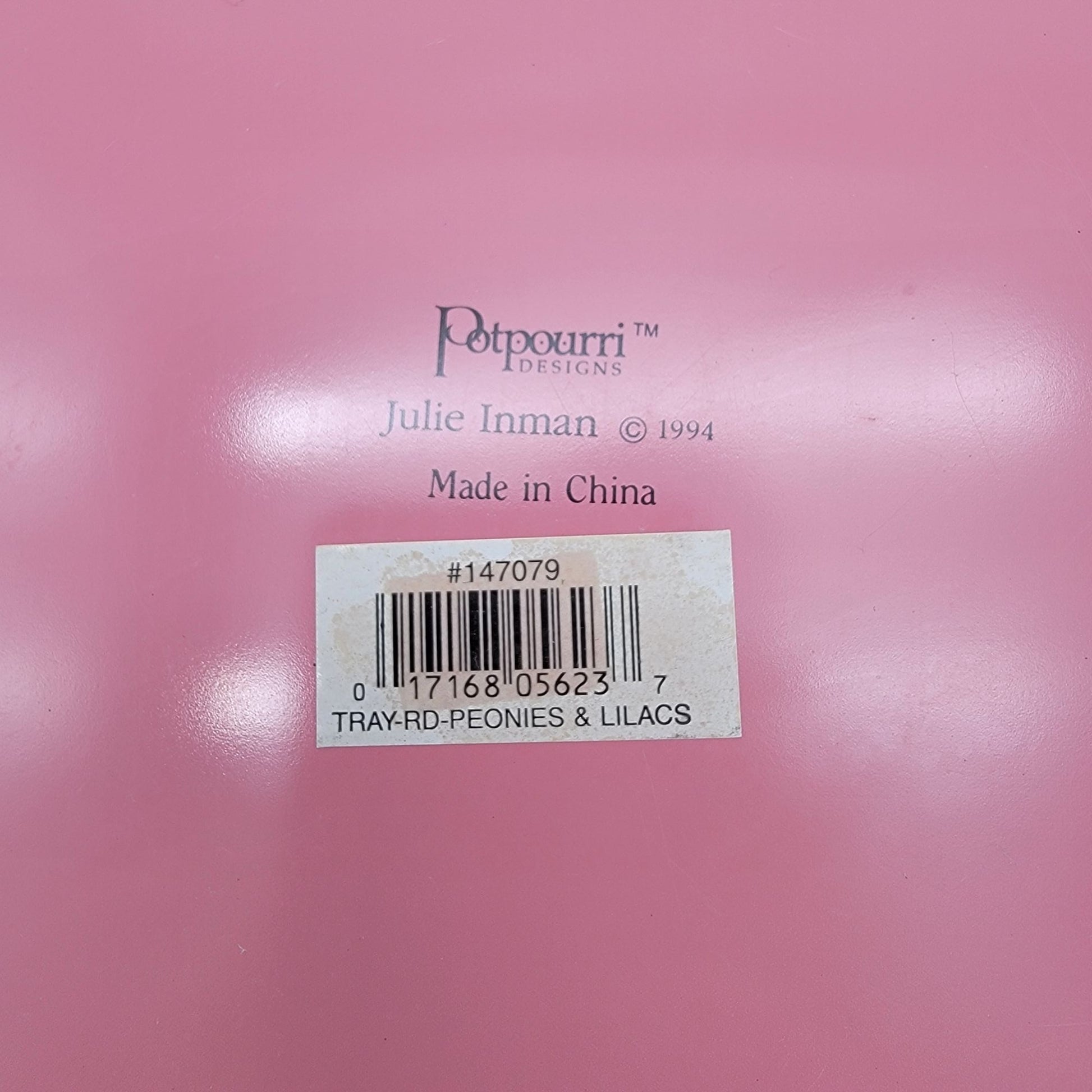 Vintage Julie Inman For Potpourri Designs Round Tin Tray With Peonies & Lilacs