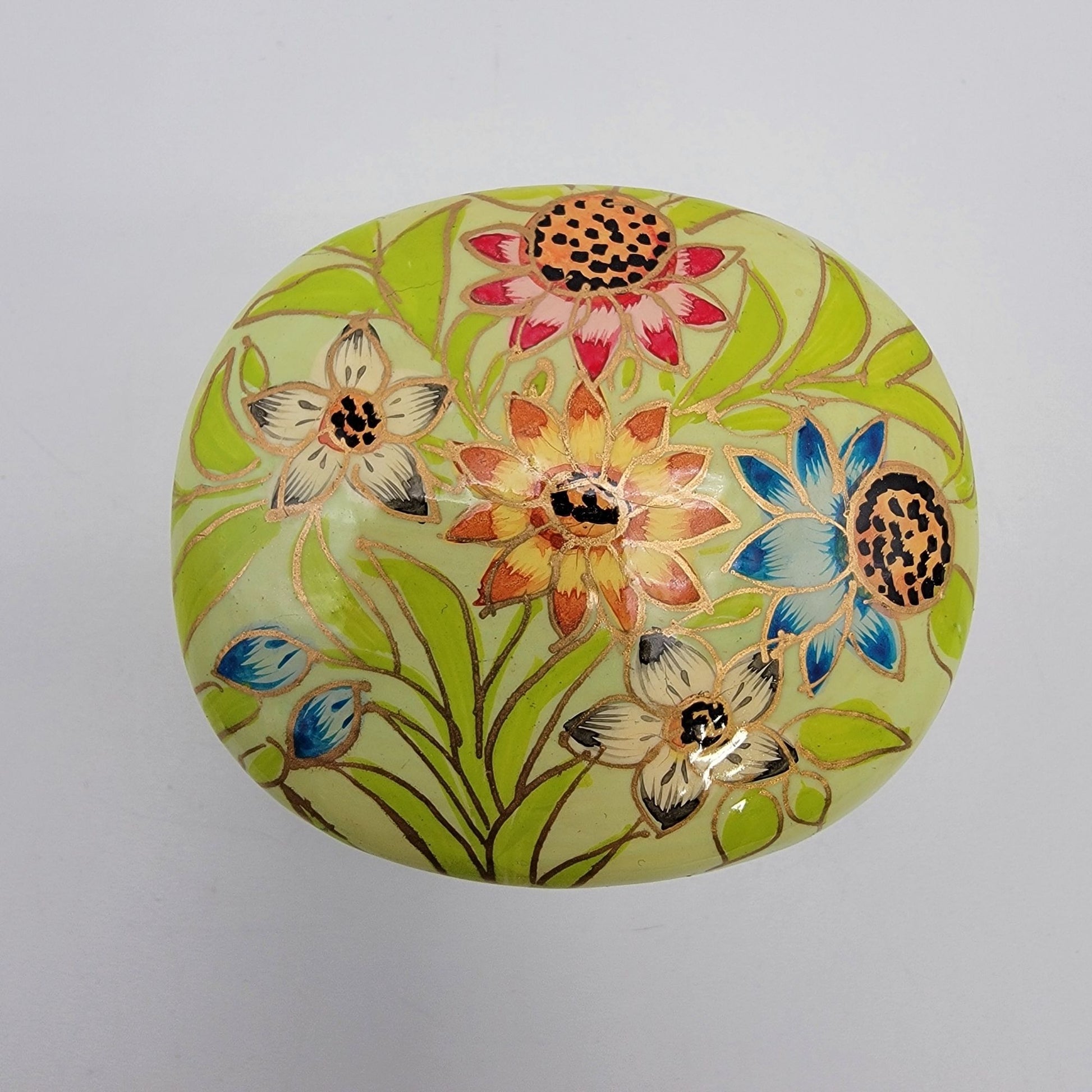 Vintage Kashmir India Lacquered Trinket Box Wildflowers