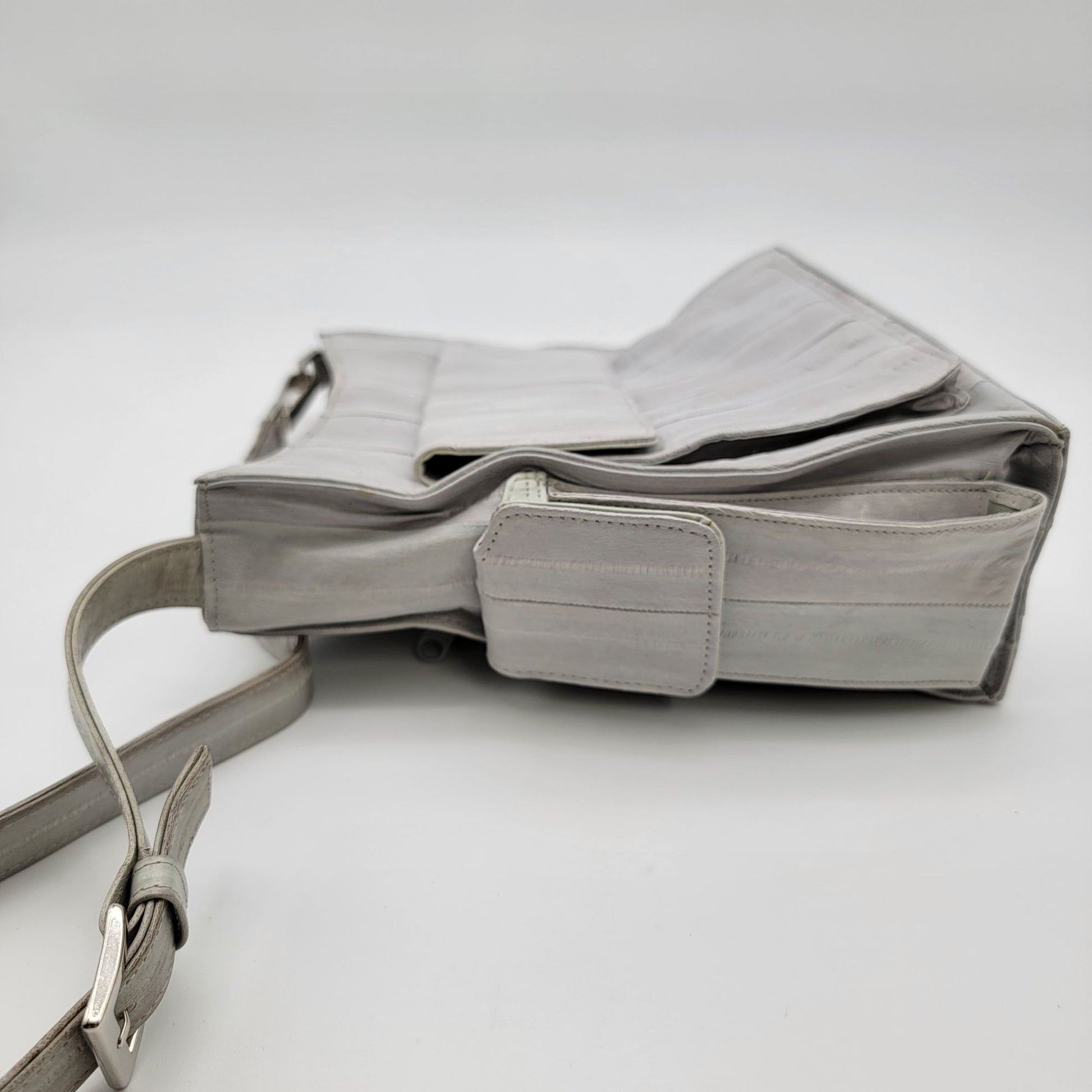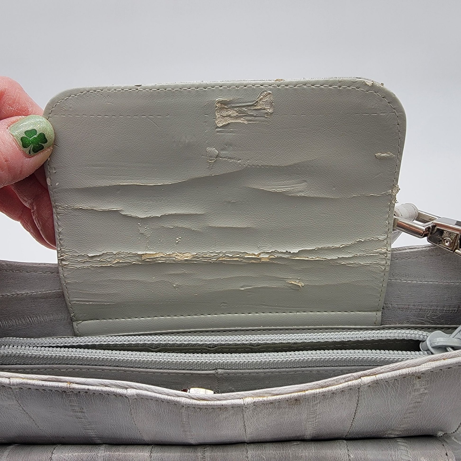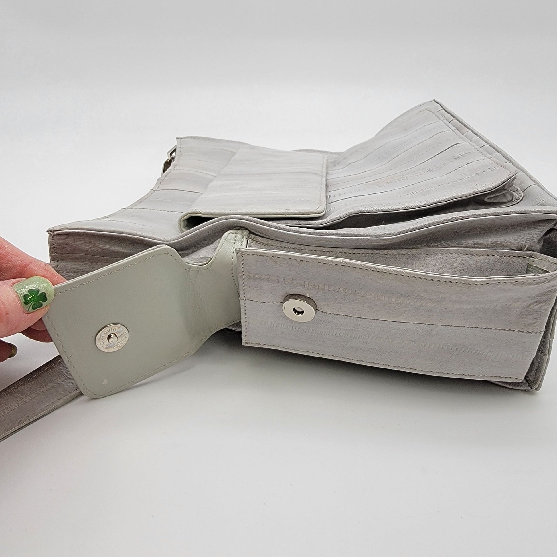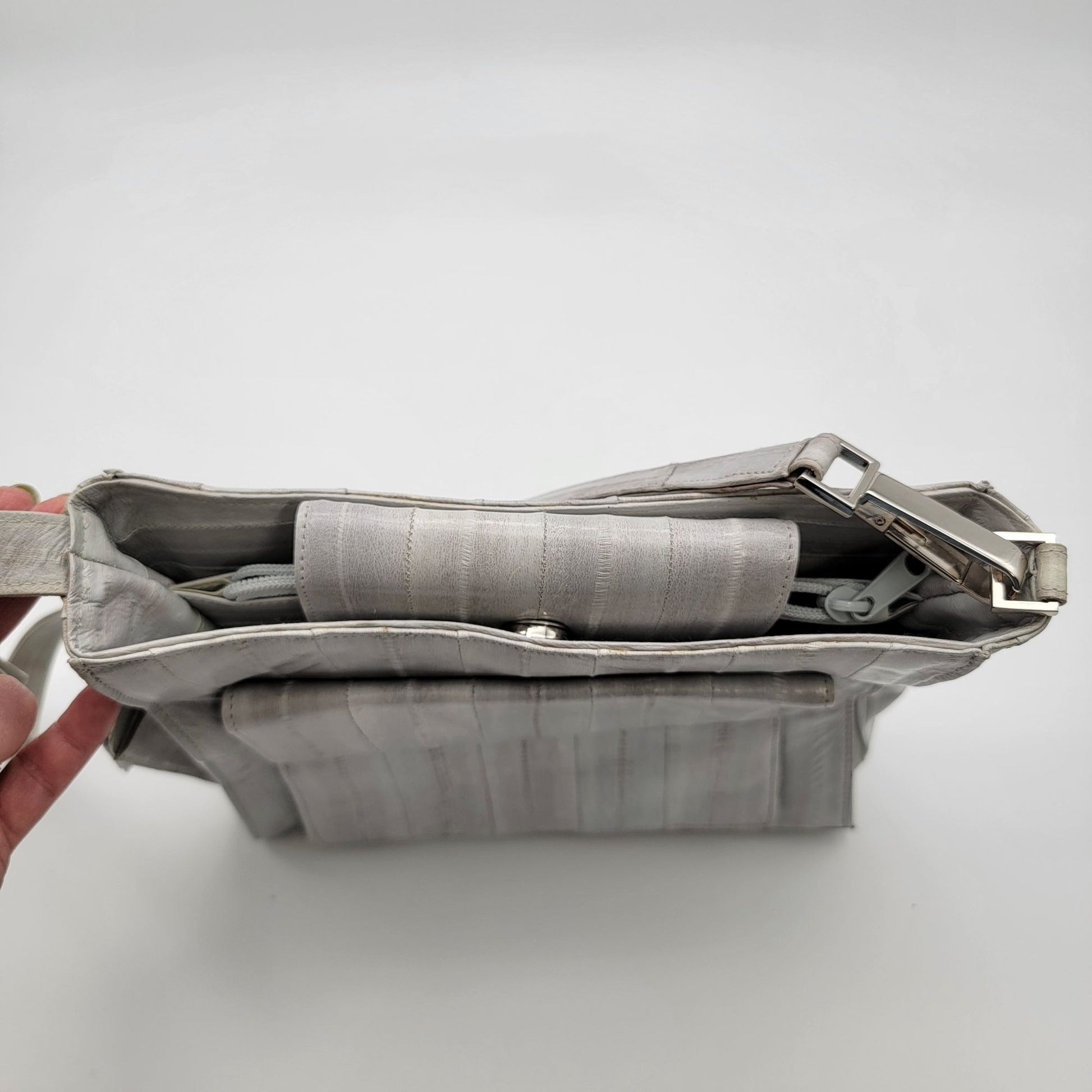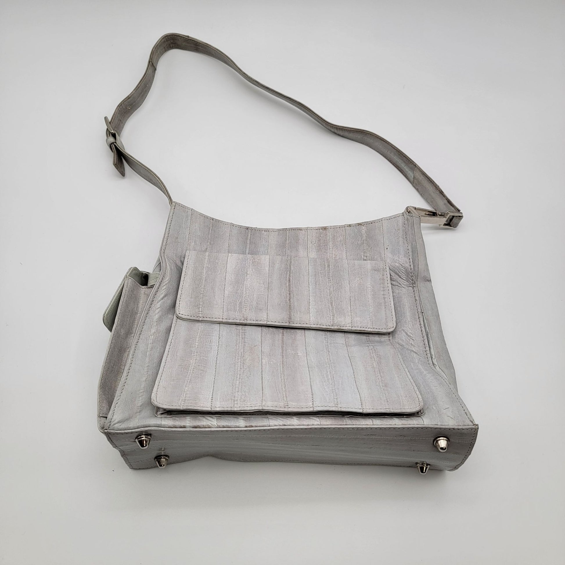 Vintage Lee Sands Grey Eelskin Leather Shoulder Crossbody Bag Purse