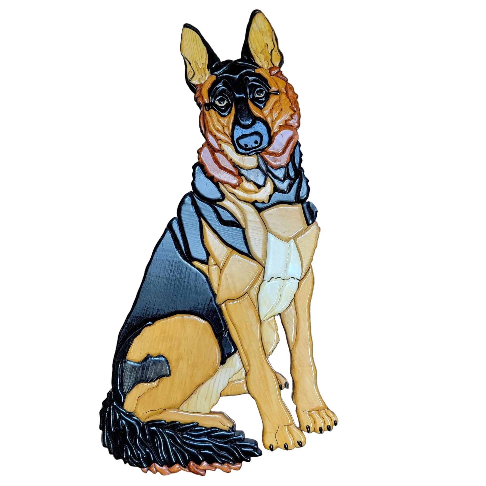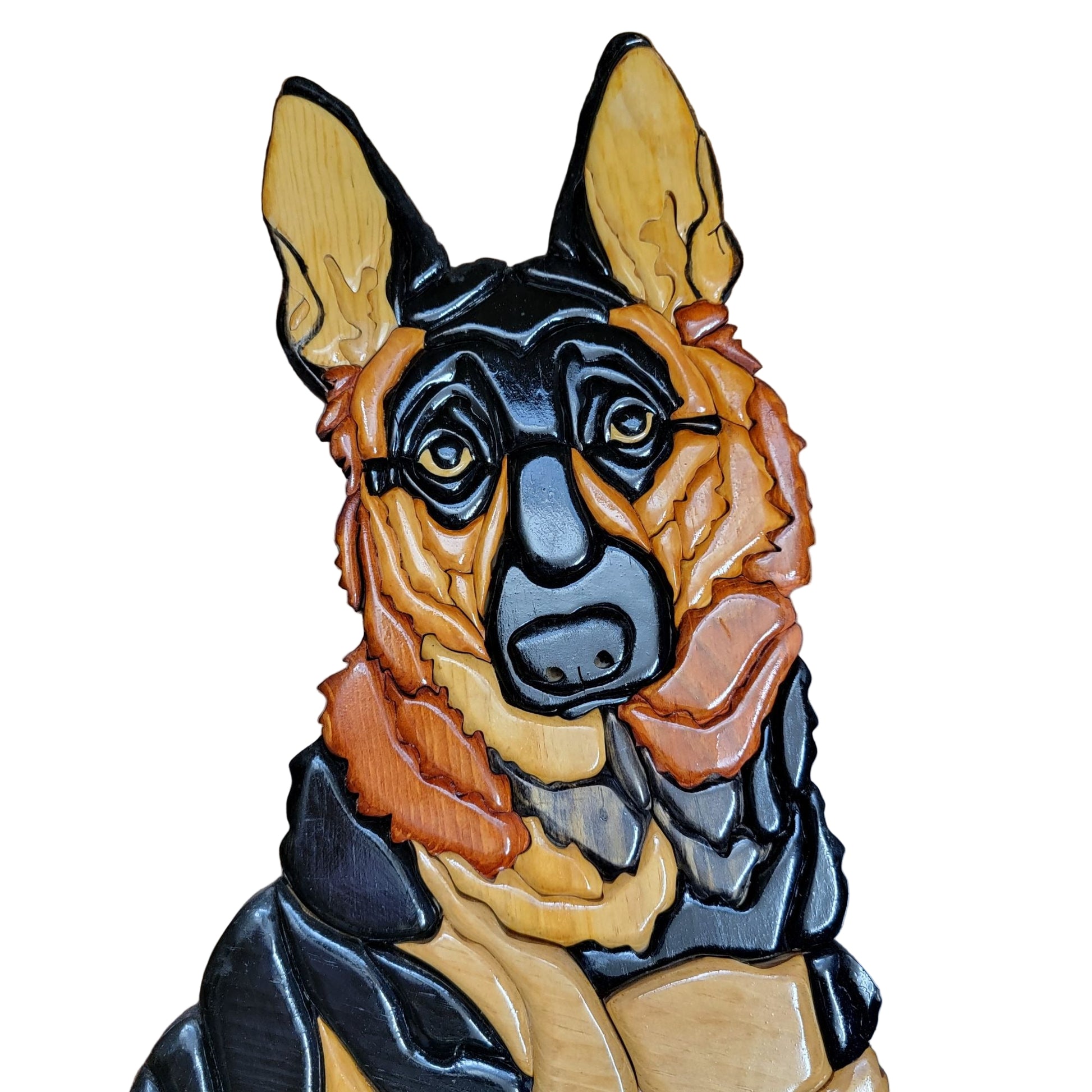 Vintage Life-size Signed Intarsia Wood German Shepherd Wall Art