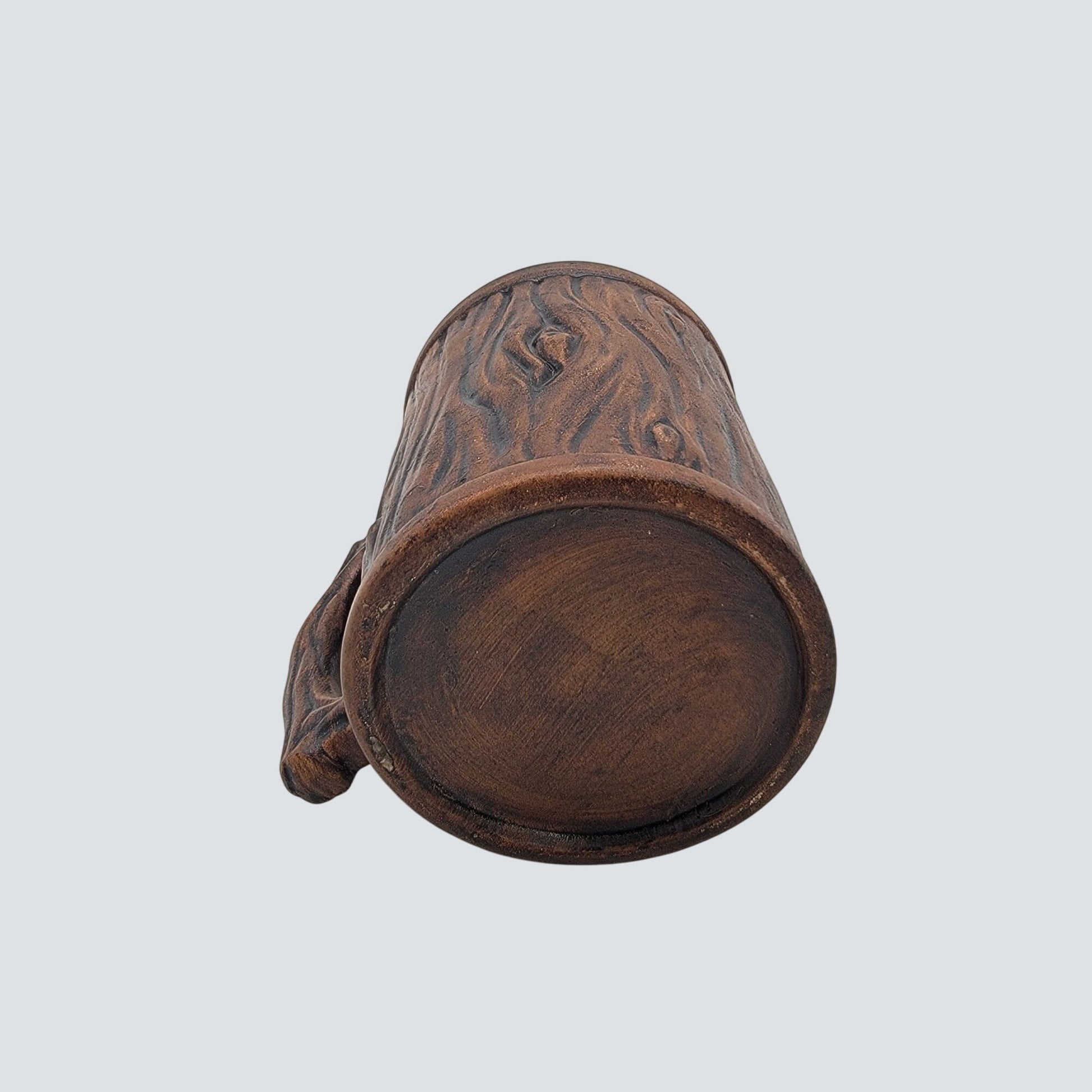 Celebrate a rustic charm with this vintage Little America pottery mug. Its bark-like texture and whimsical penguin design evoke nostalgia and warmth.