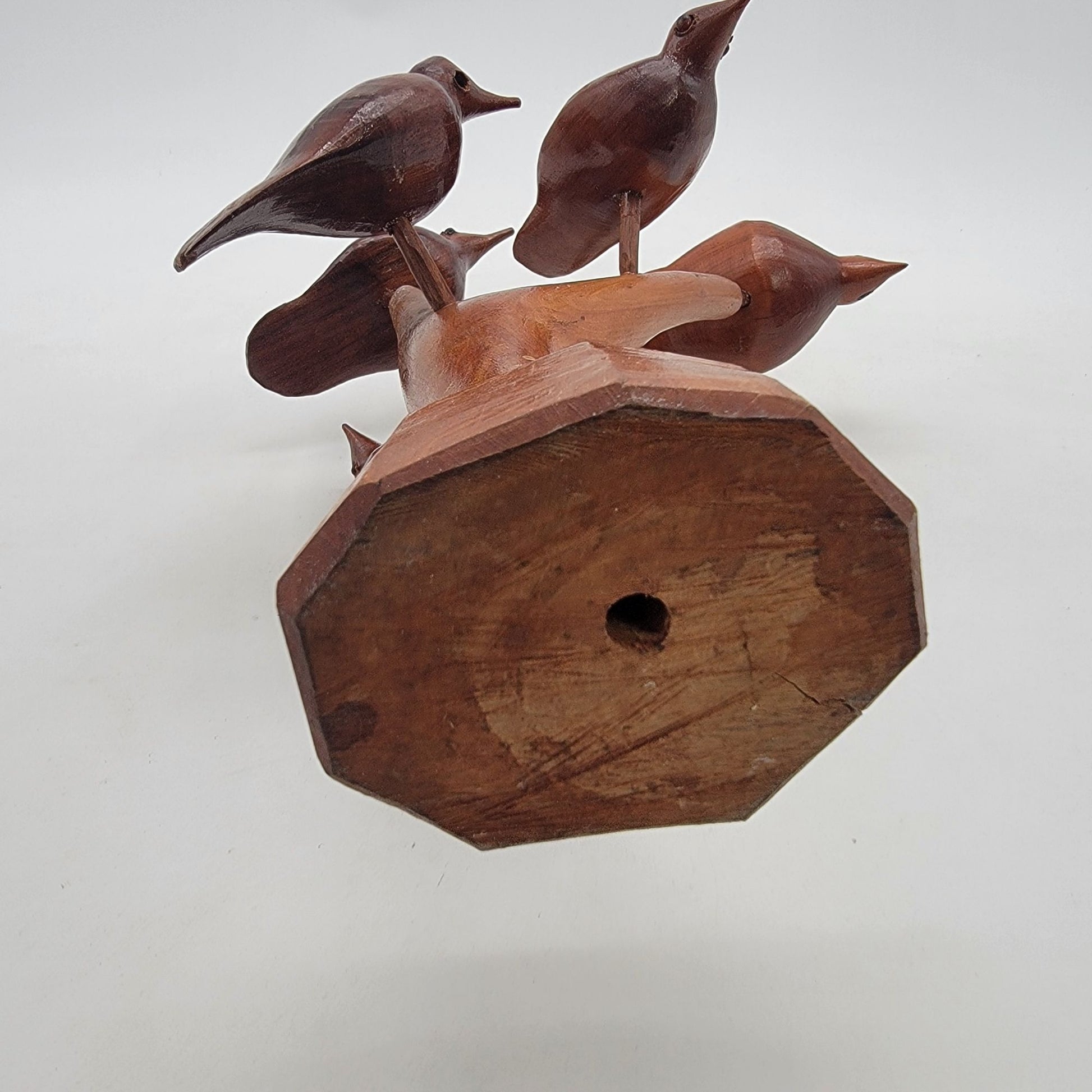 Vintage MCM Hand Carved Wood Sculpture 5 Birds On Tree Limb