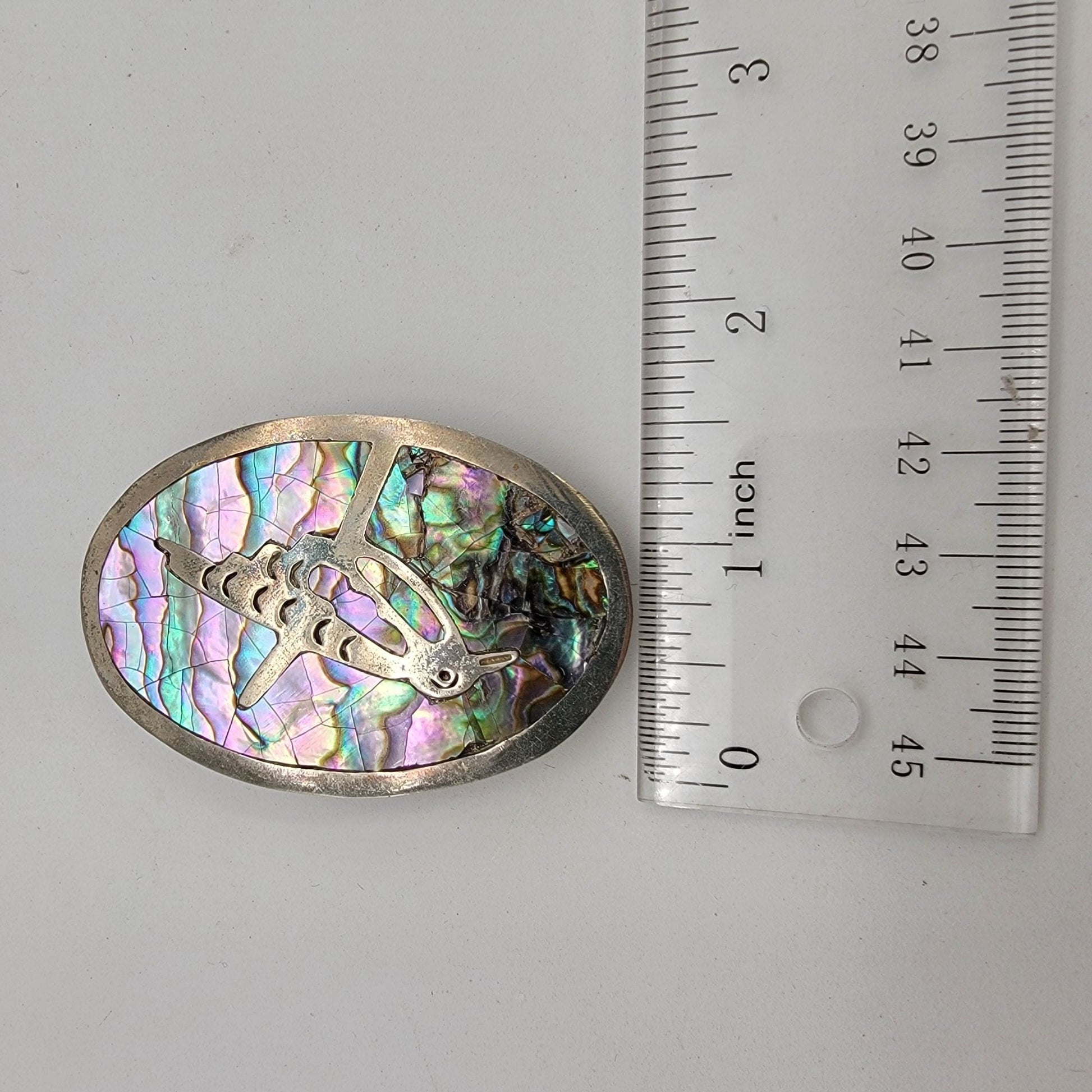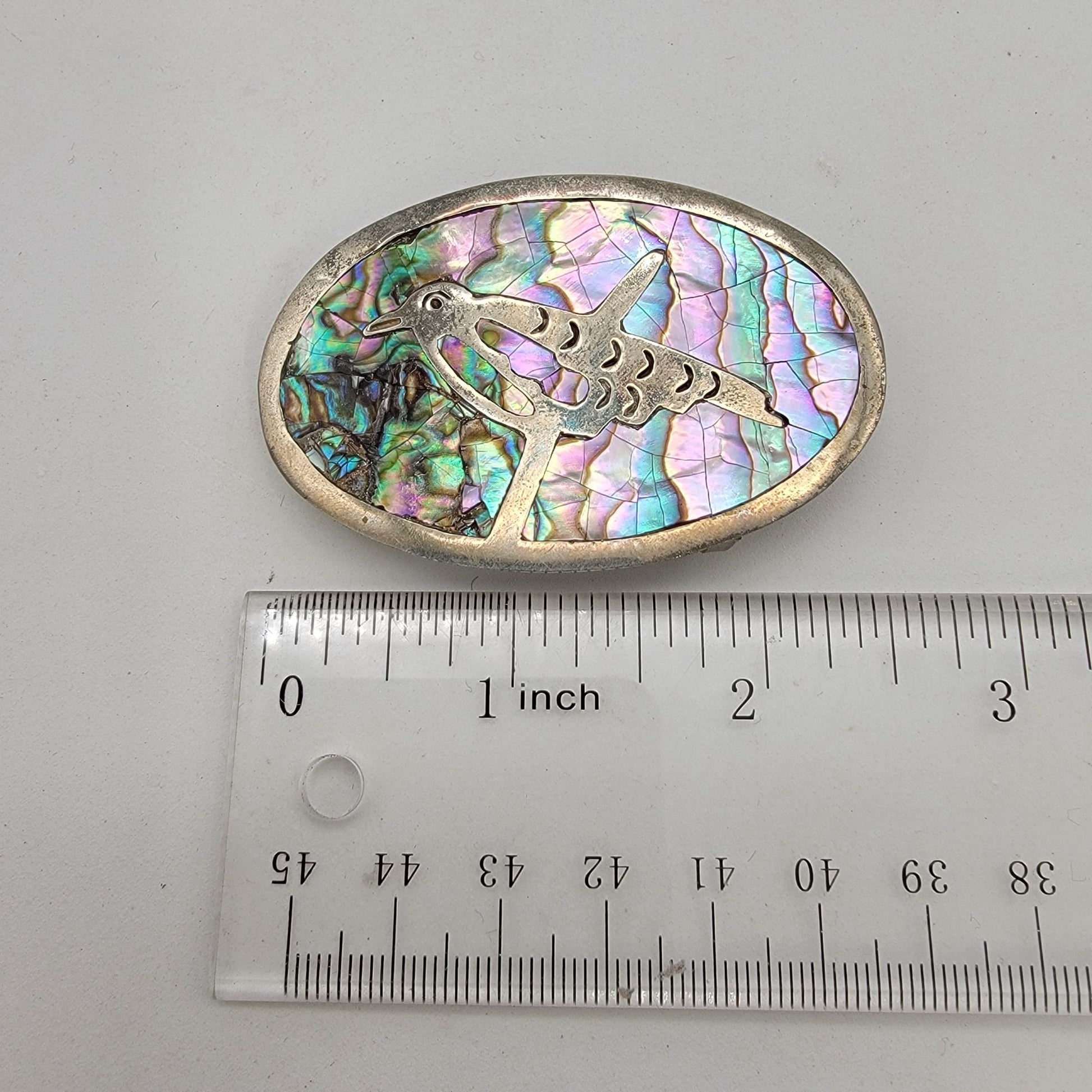 Vintage Mexican Abalone Inlay Belt Buckle With Bird
