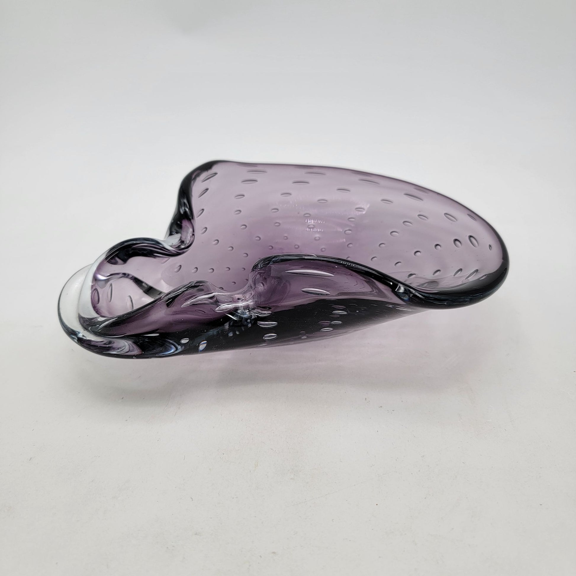 Vintage Mid Century Abstract Amethyst Purple Controlled Bubble Art Glass Ashtray Bowl