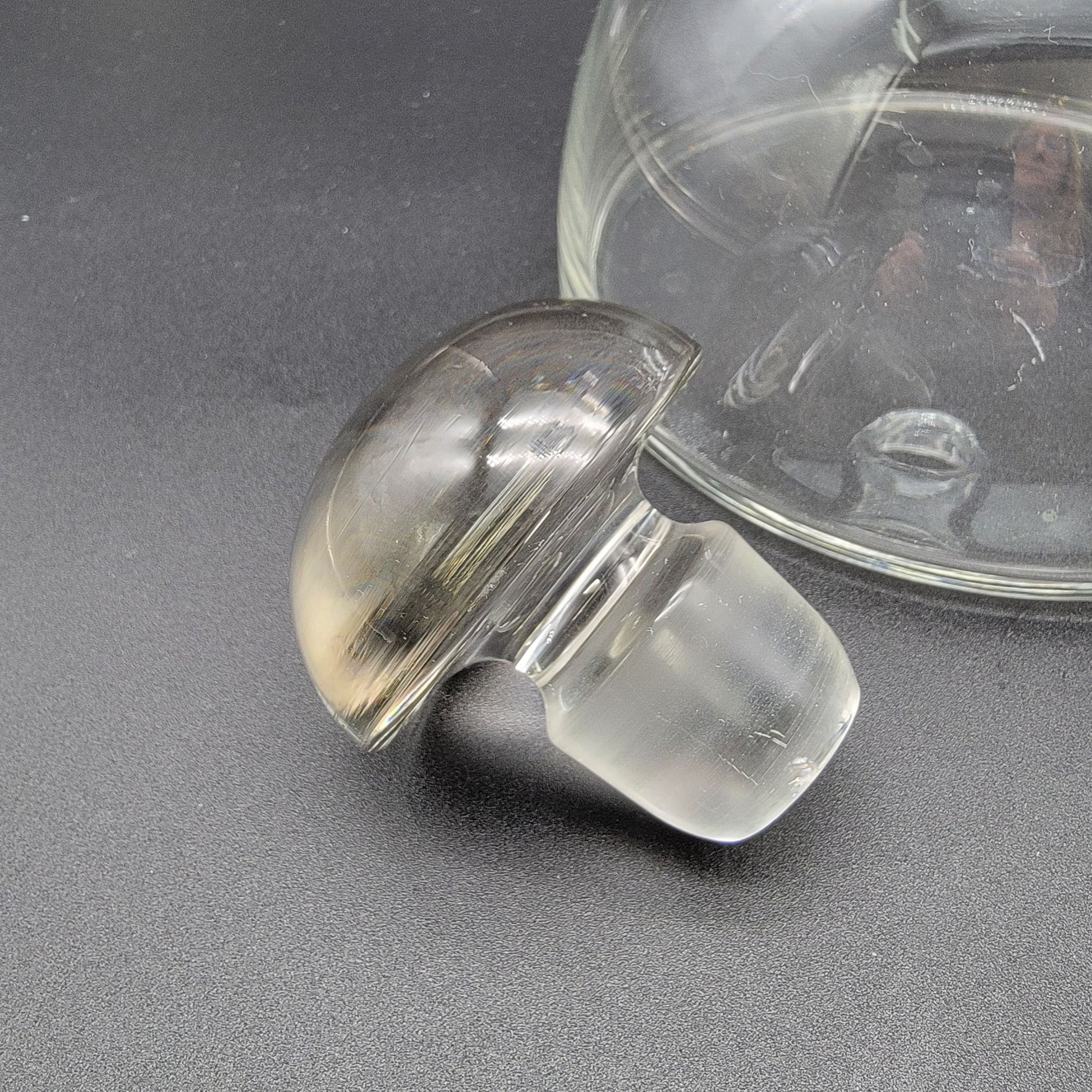 • Handcrafted clear glass with a mushroom-shaped stopper