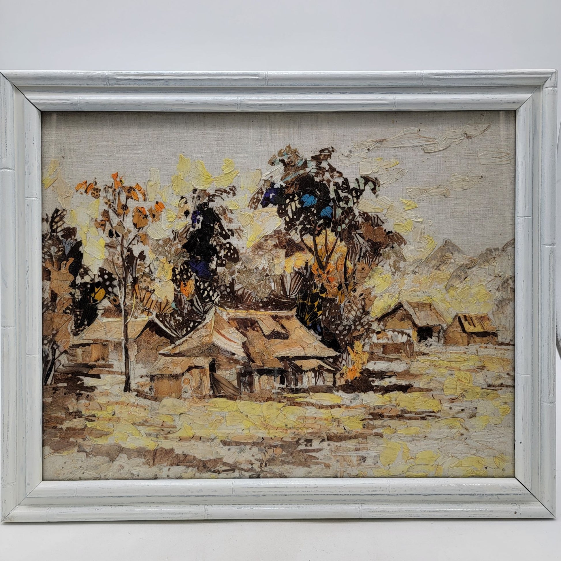 Vintage Original Butterfly Wings Art Asian Landscape