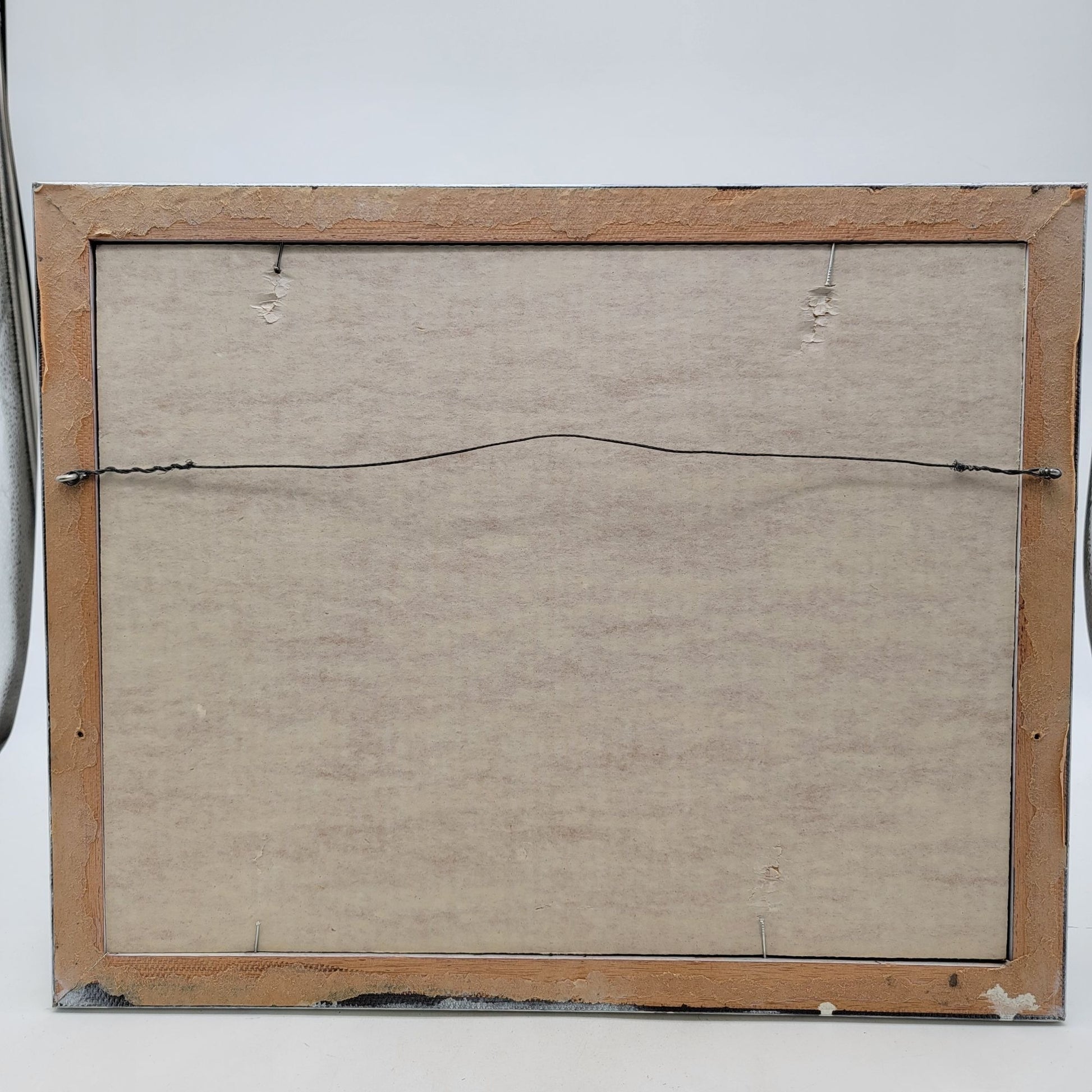 • White wooden frame enhances the artwork's elegance