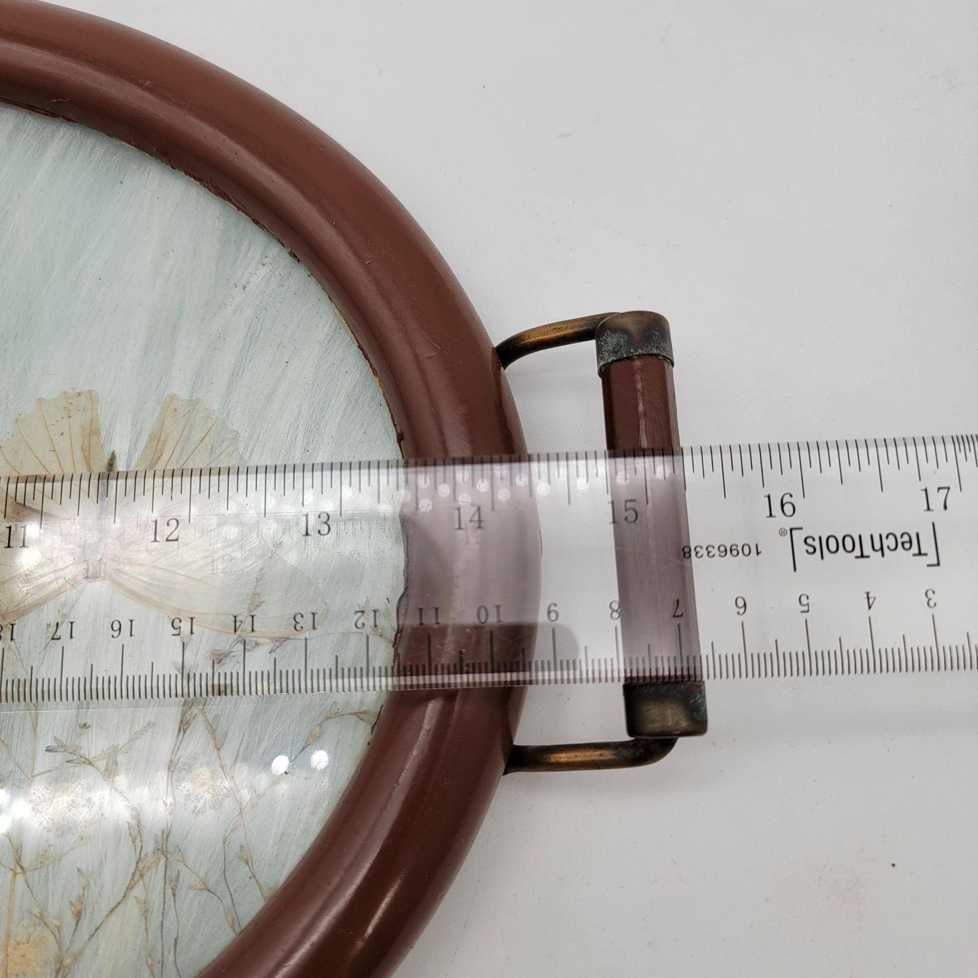 • Glass-covered pressed flowers and butterfly design