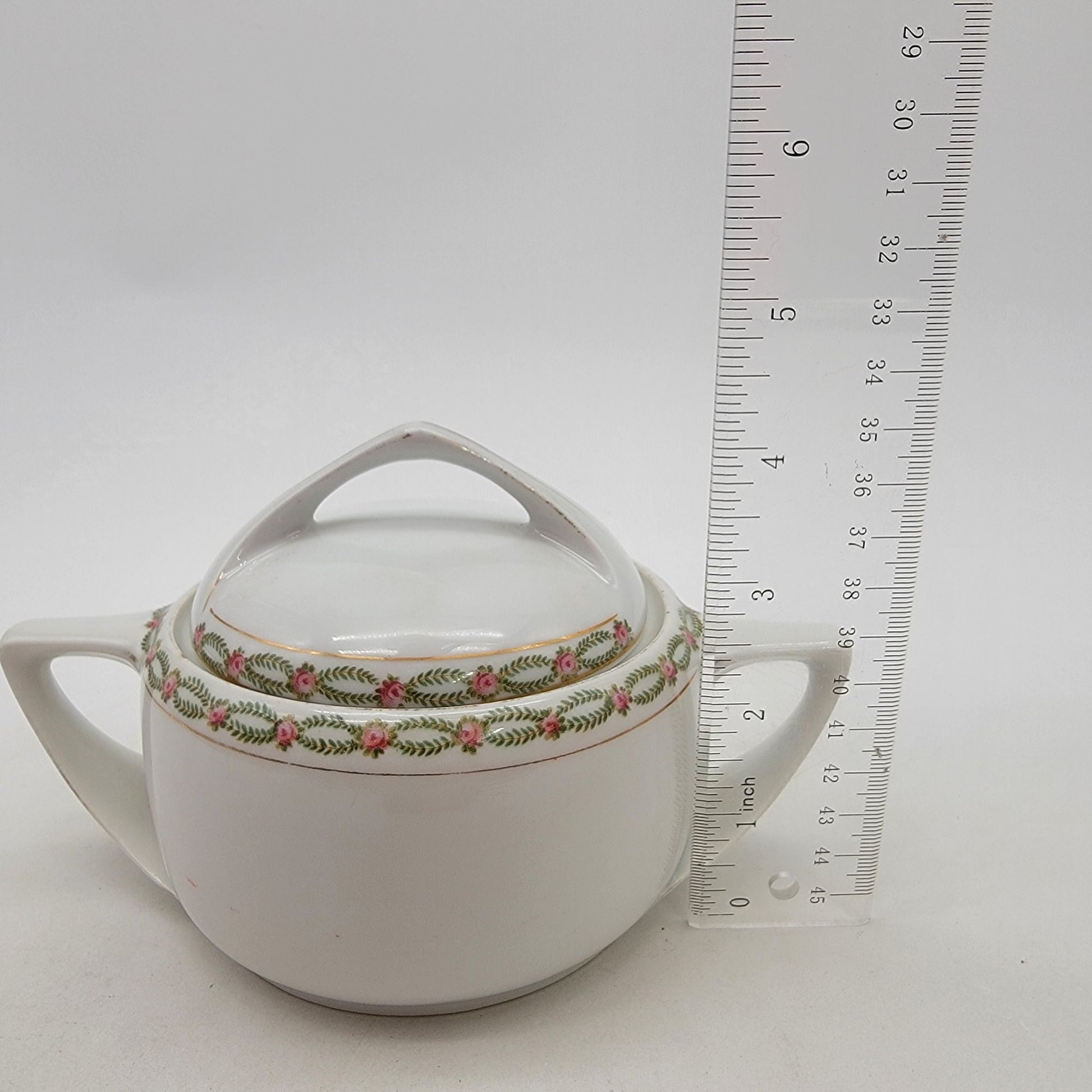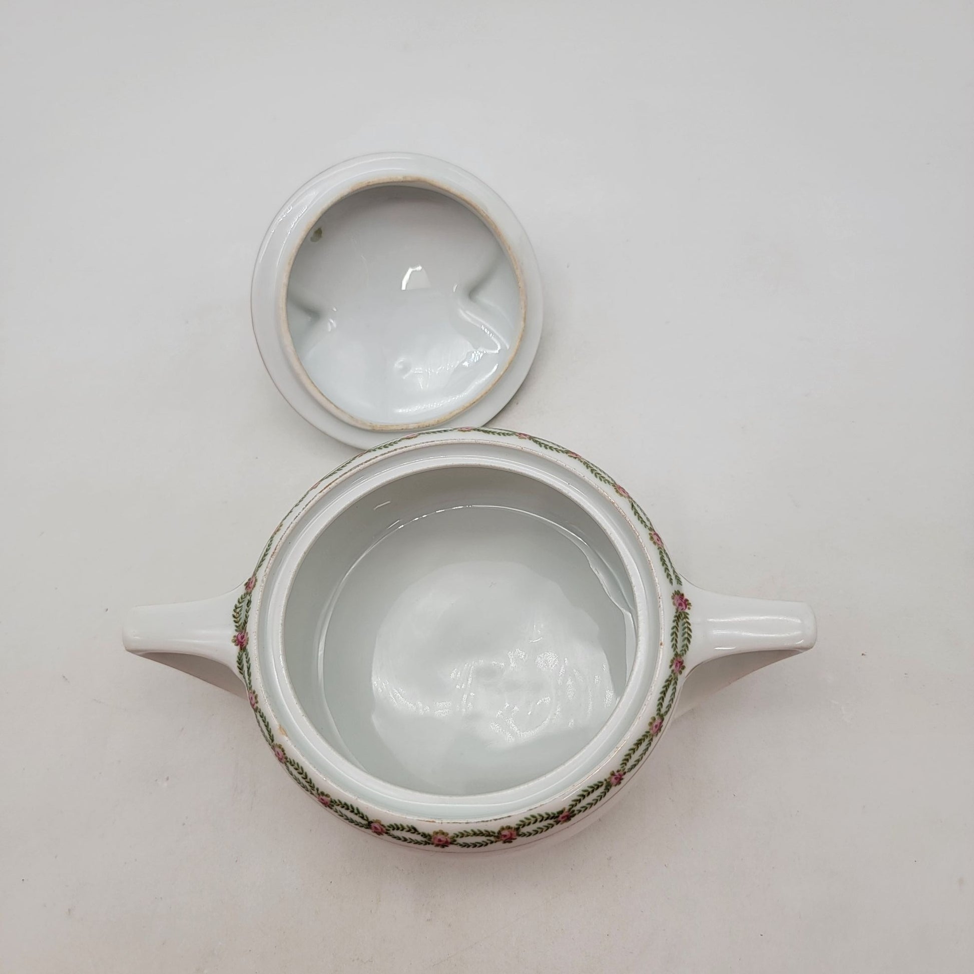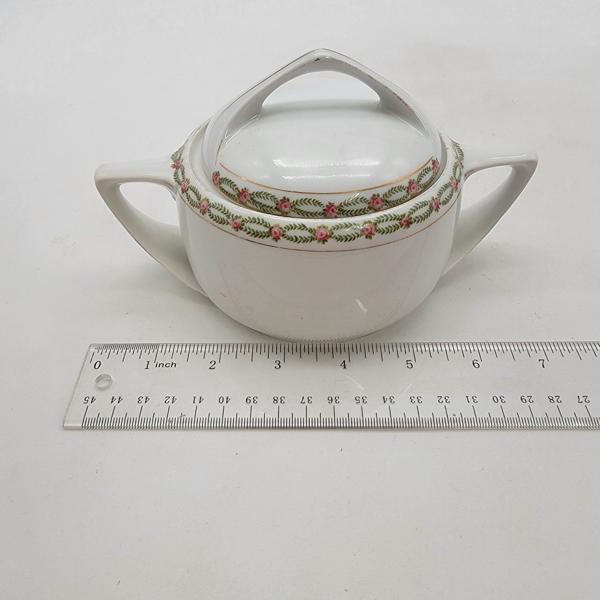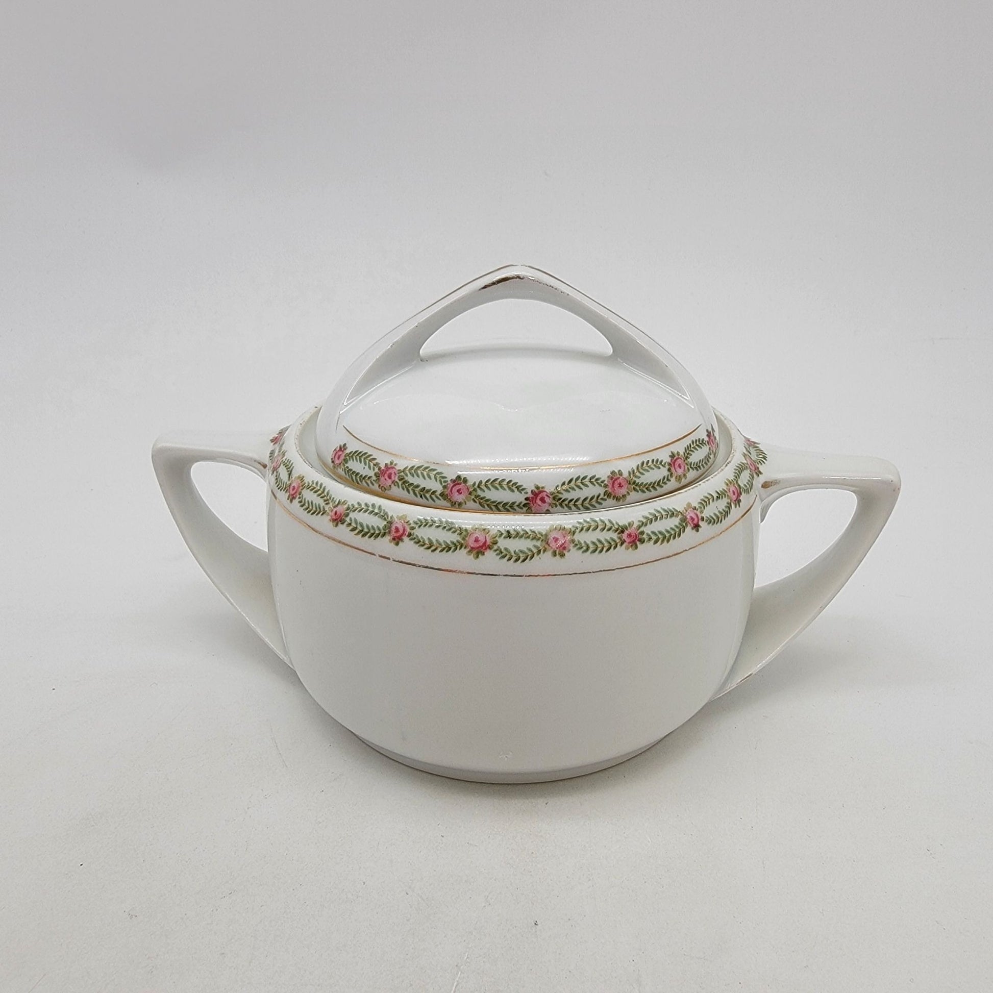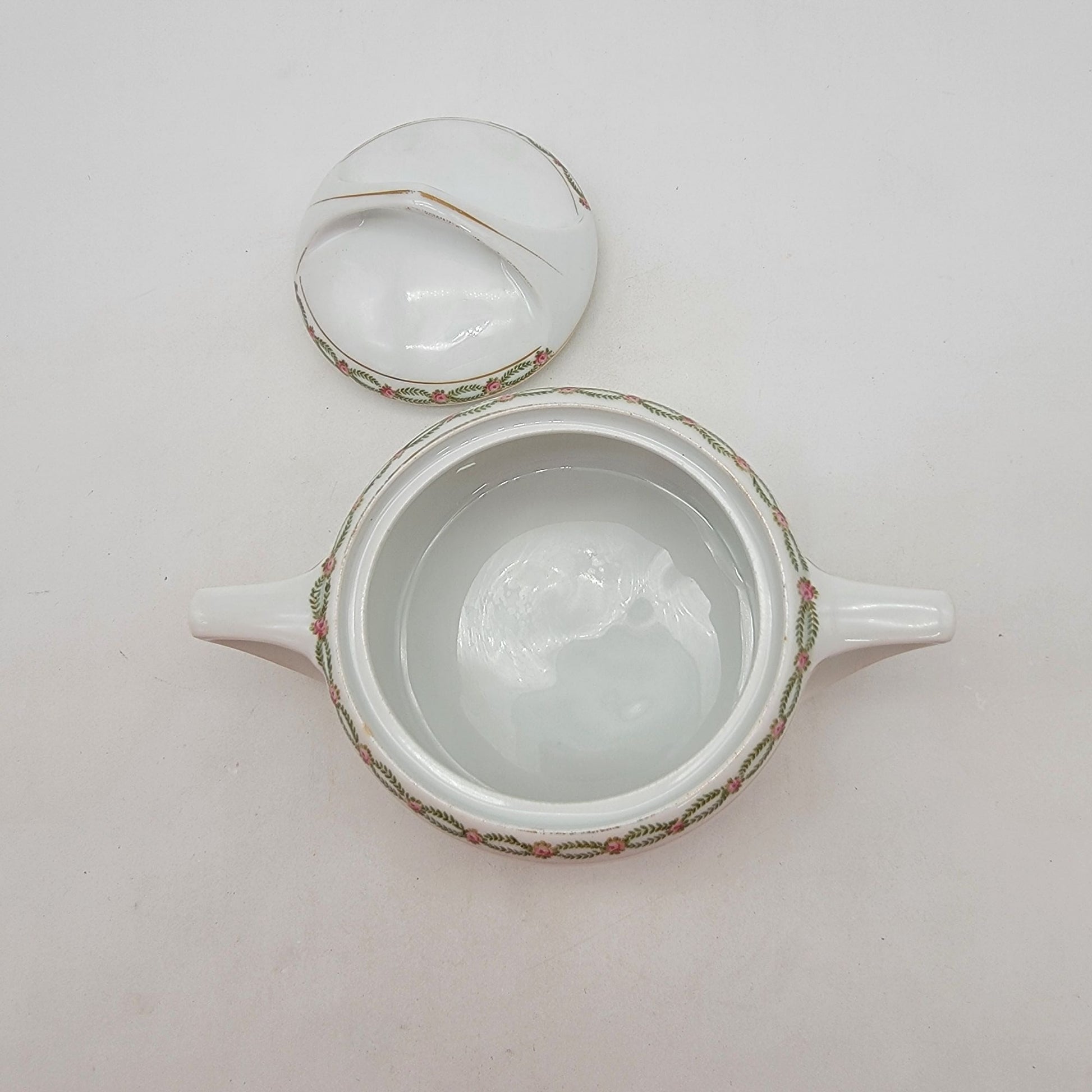 This delicate covered sugar bowl showcases Rosenthal Bavaria's "Donatello" pattern with a timeless floral motif in pink and green. A classic addition to vintage collections.