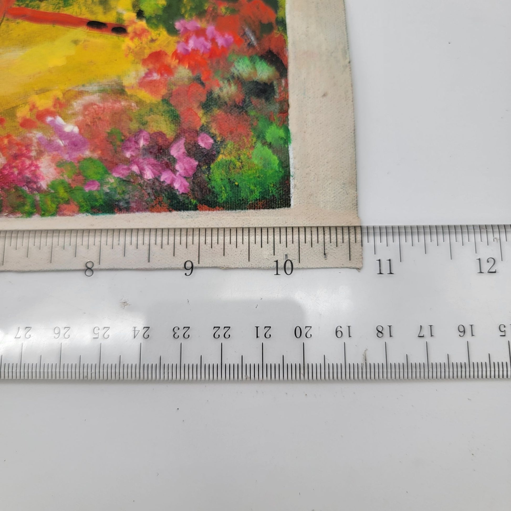 This vintage hand-painted canvas features a charming rural landscape, showcasing vibrant colors and intricate details. Its quaint depiction of a countryside scene captures a nostalgic essence. Perfect for adding a touch of vintage charm to any room, this piece will be a timeless addition to your collection.
