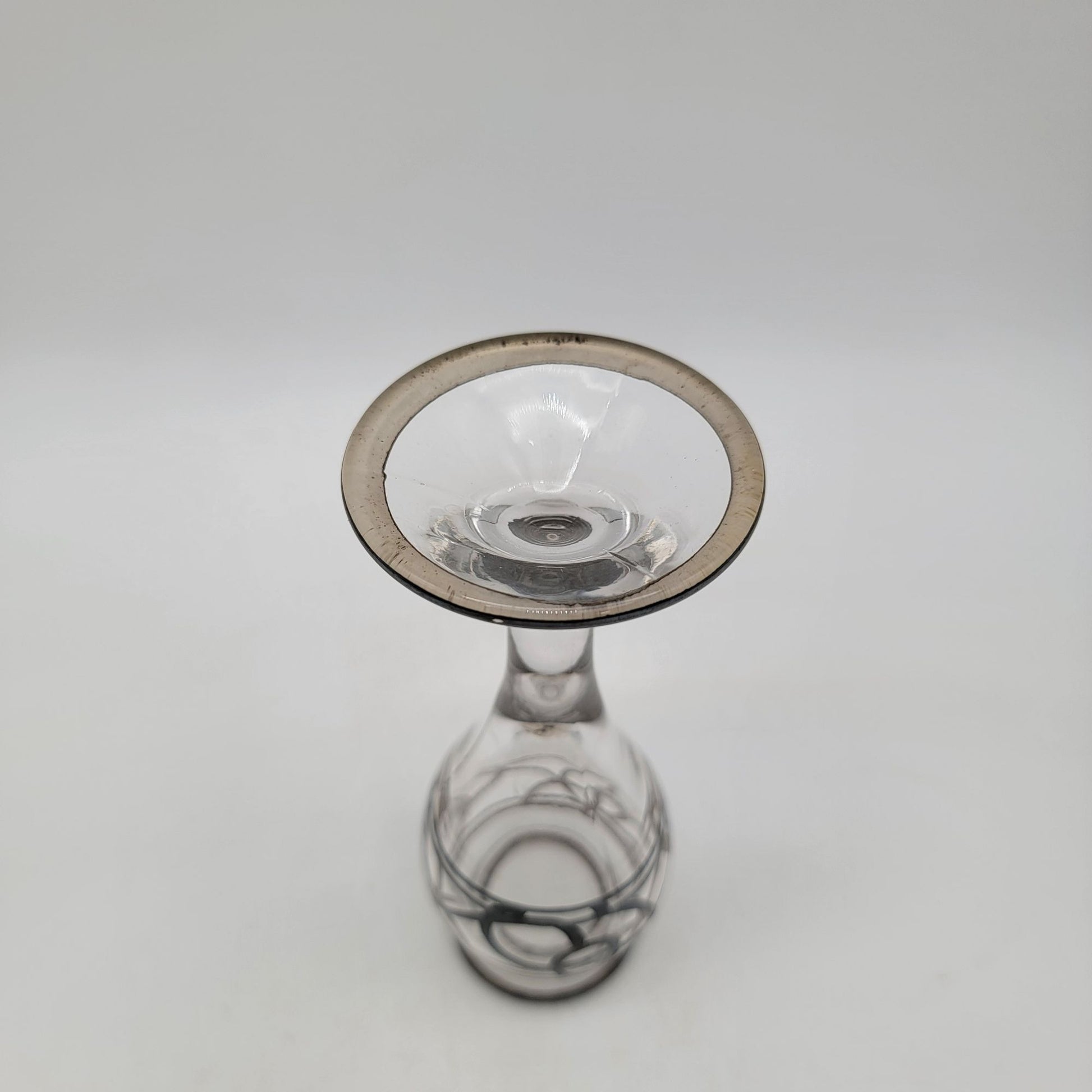 This delicate vintage bud vase features Silver City's iconic glass craftsmanship with black swirl overlay. A timeless accent for antique decor.