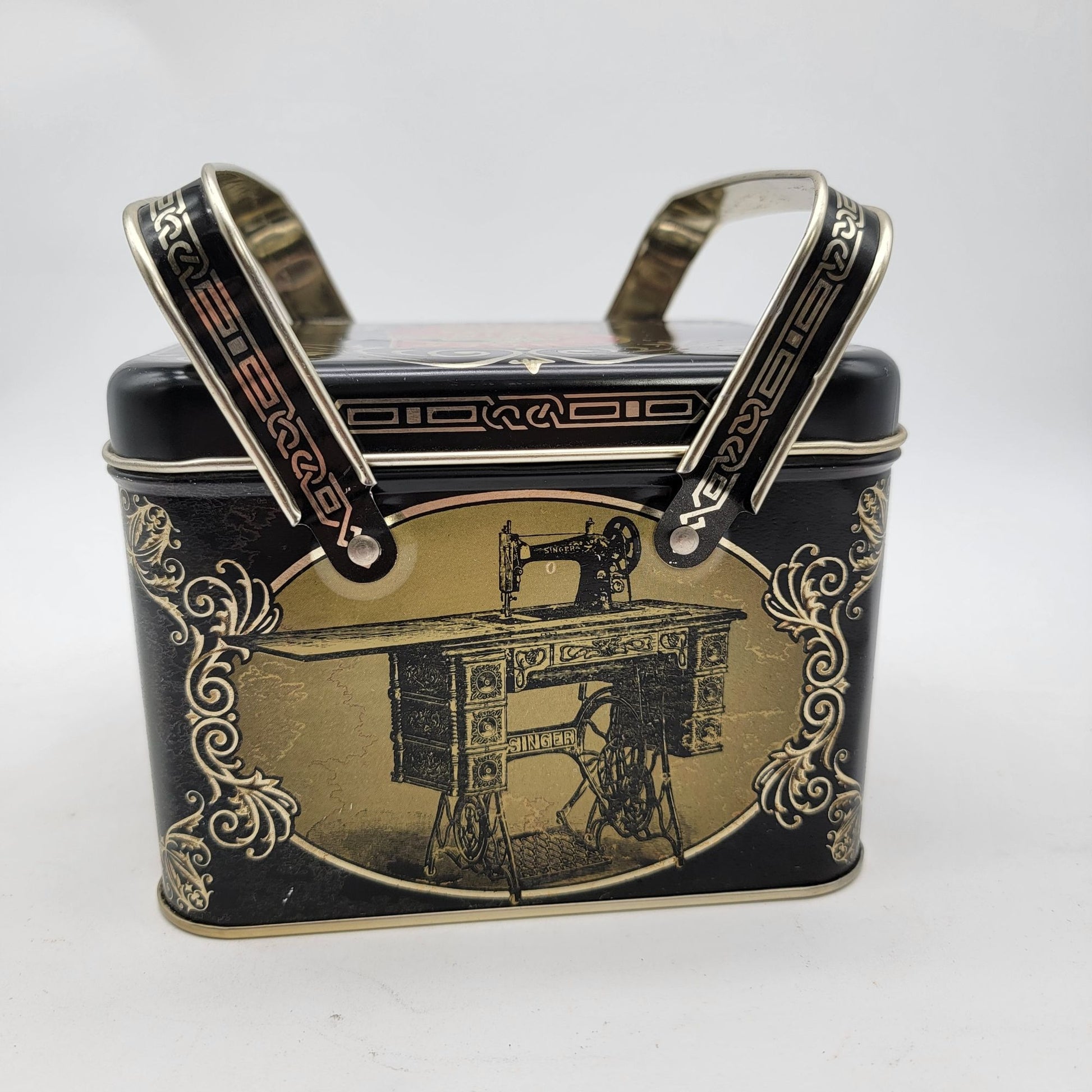 Vintage Singer Sewing Machines Metal Storage Tin Box with Handles