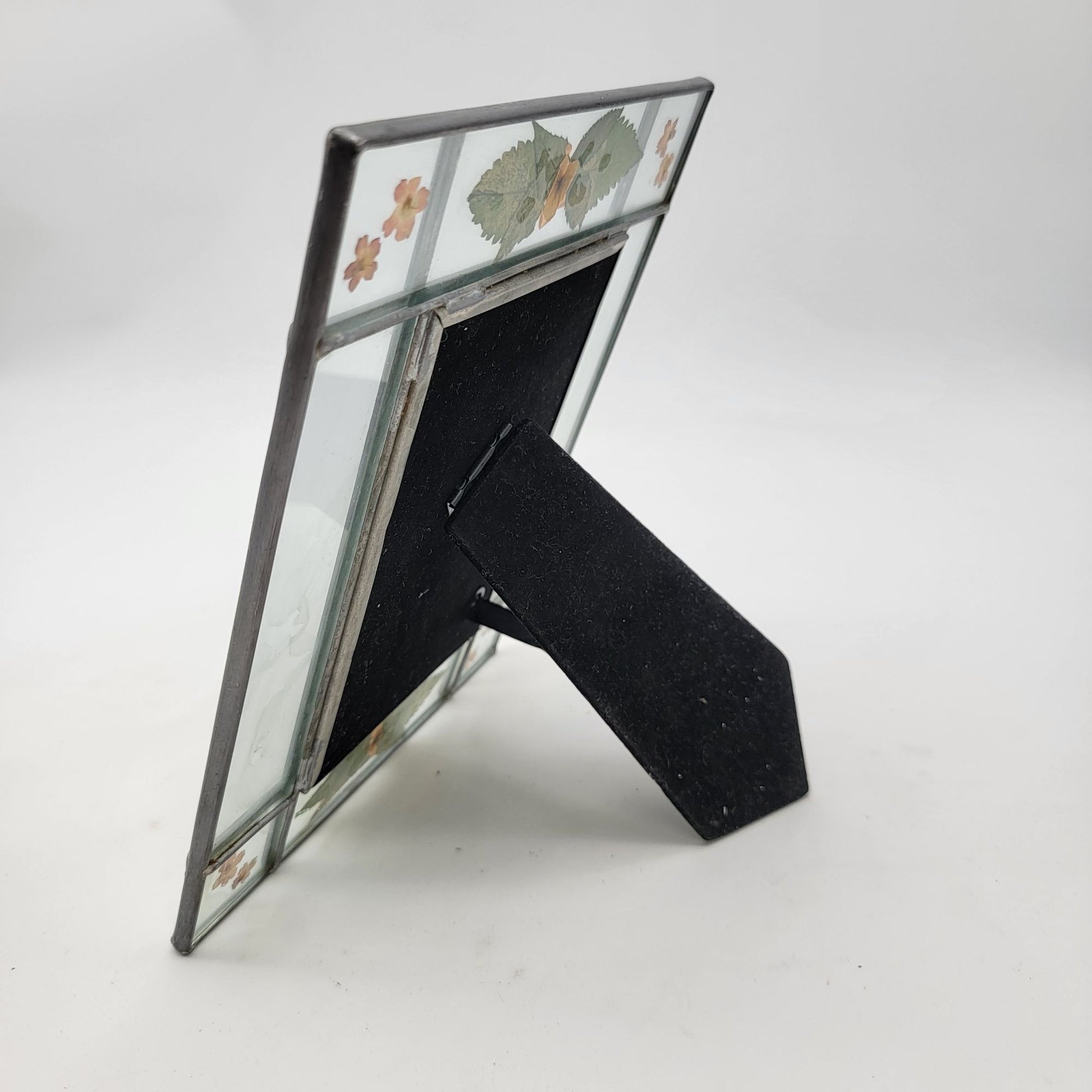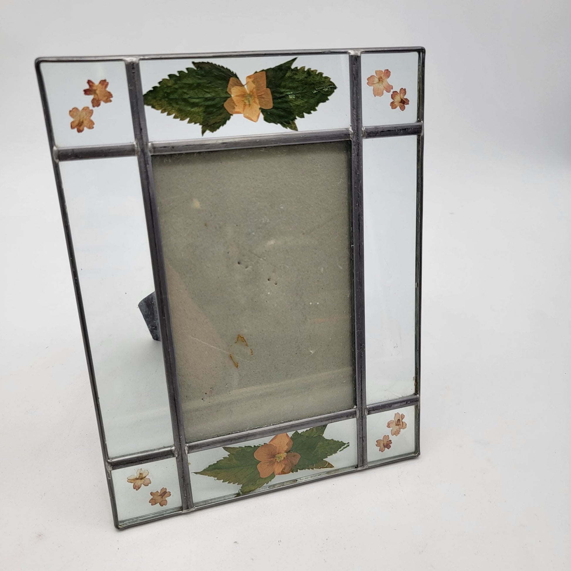 This vintage photo frame is a nostalgic piece, showcasing delicate pressed flowers encased in stained glass. Its timeless design complements a variety of decor styles, from rustic to elegant. Perfect for preserving cherished memories, this frame stands as an exquisite piece of craftsmanship, blending nature's beauty with artisan skill.