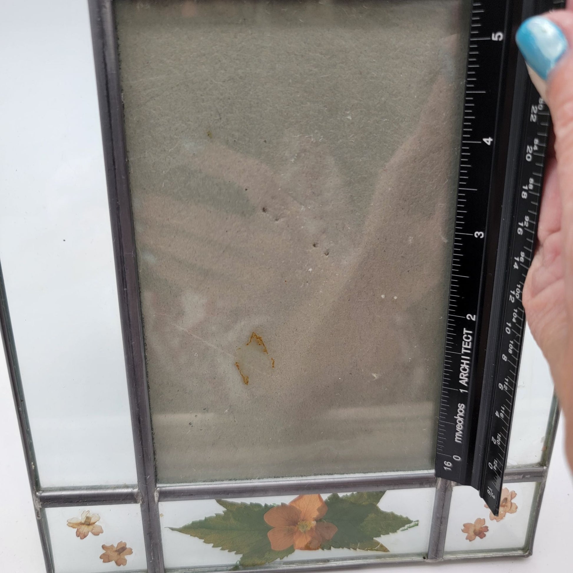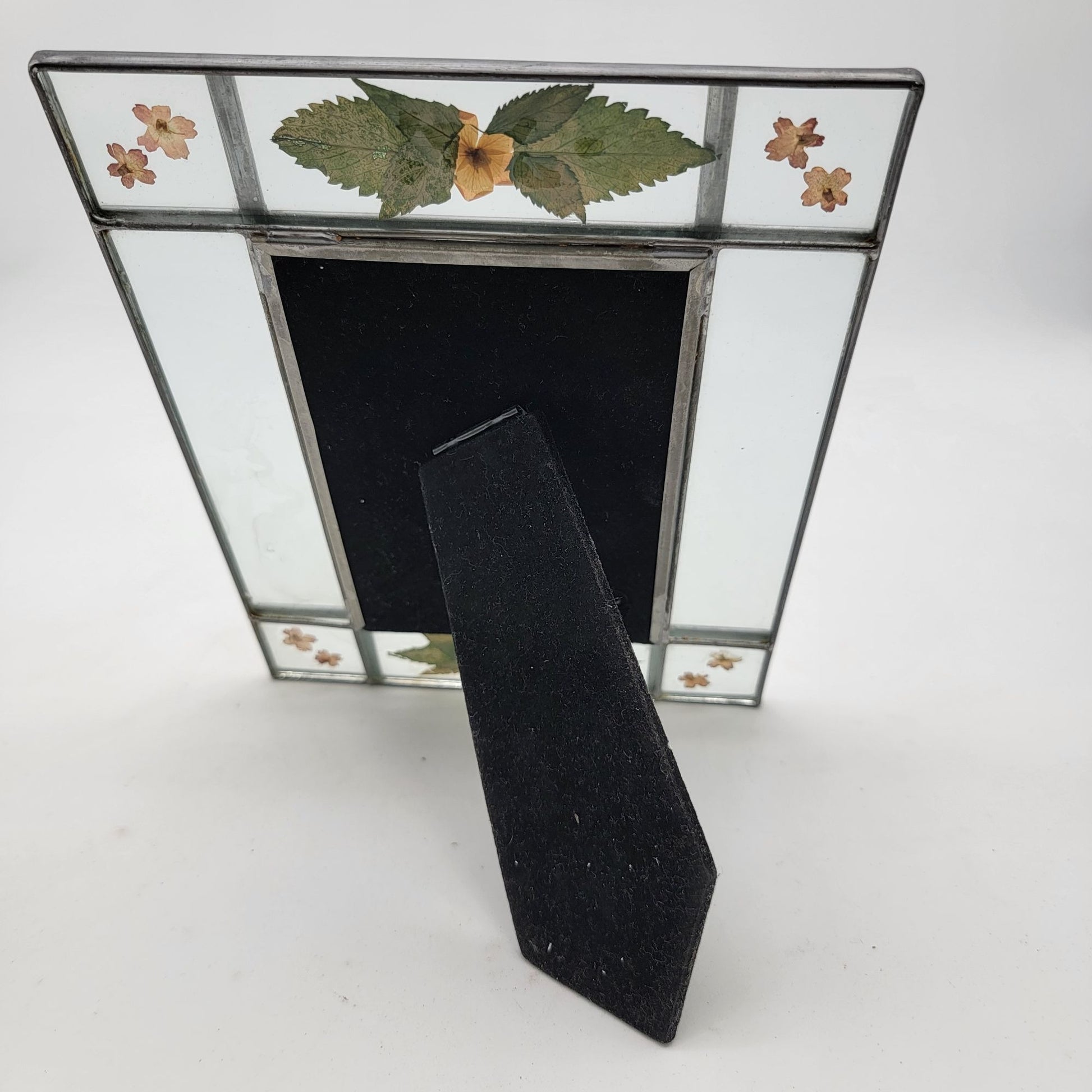 Vintage Stained Glass Photo Frame With Pressed Flowers