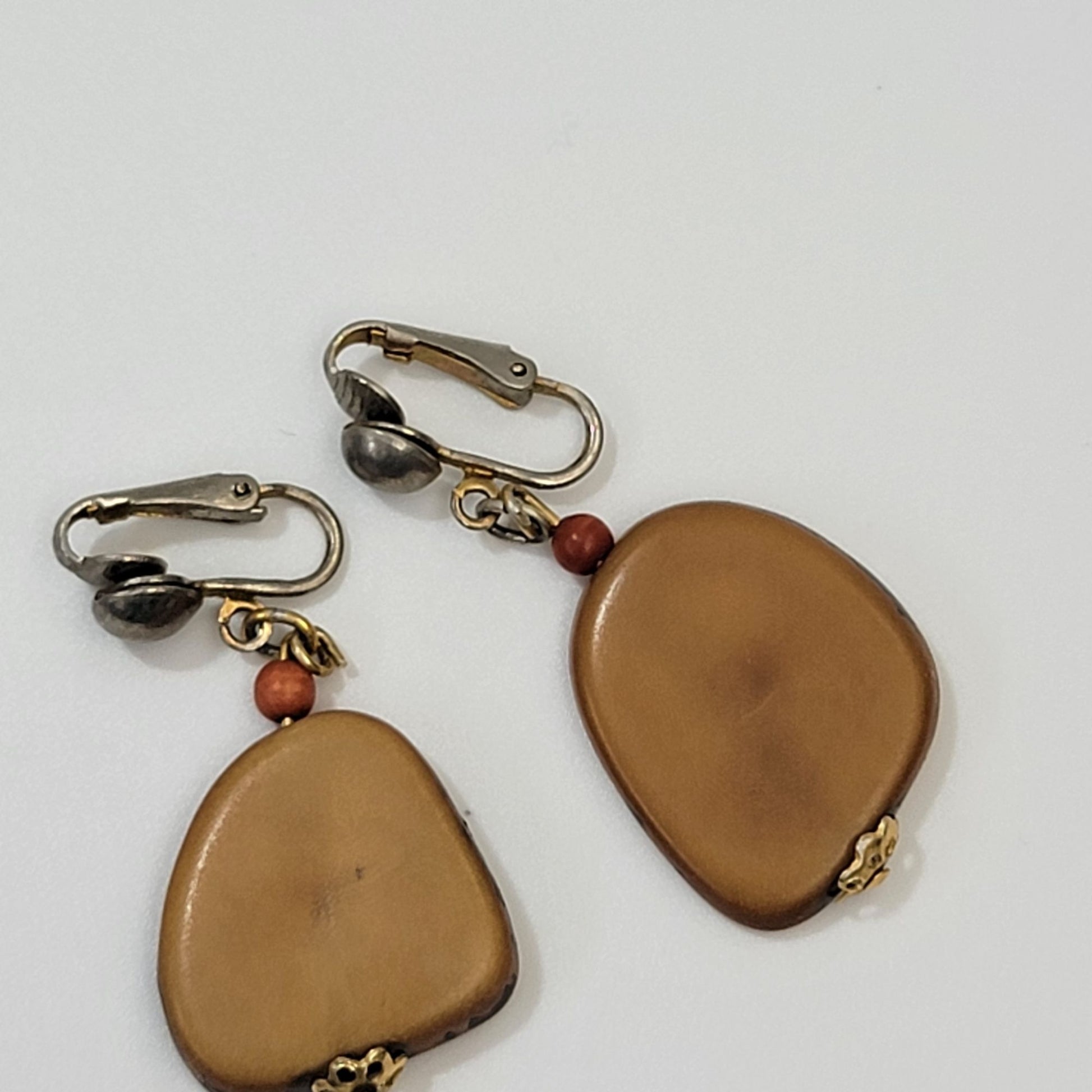 Vintage Tagua Nut Clip-On Earrings