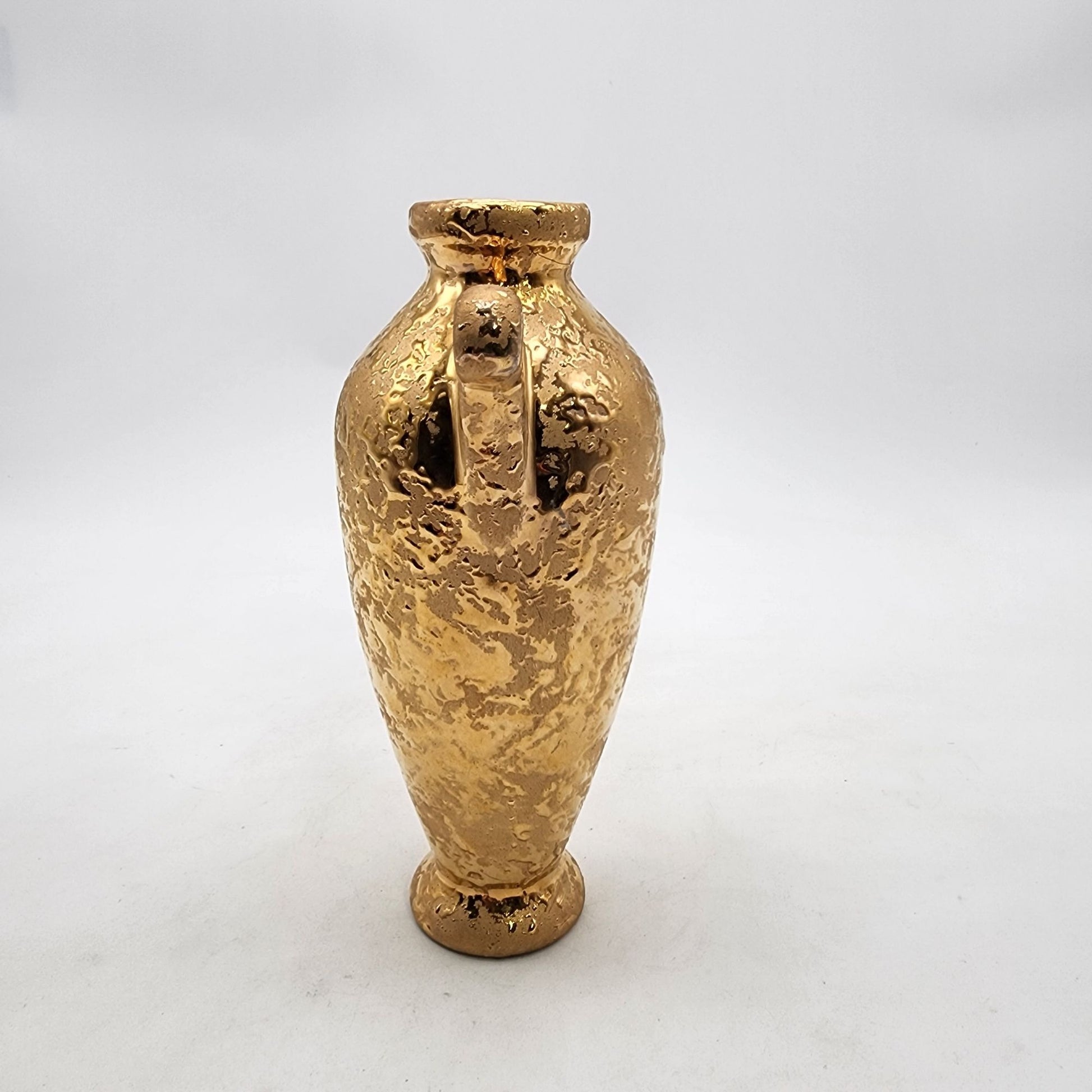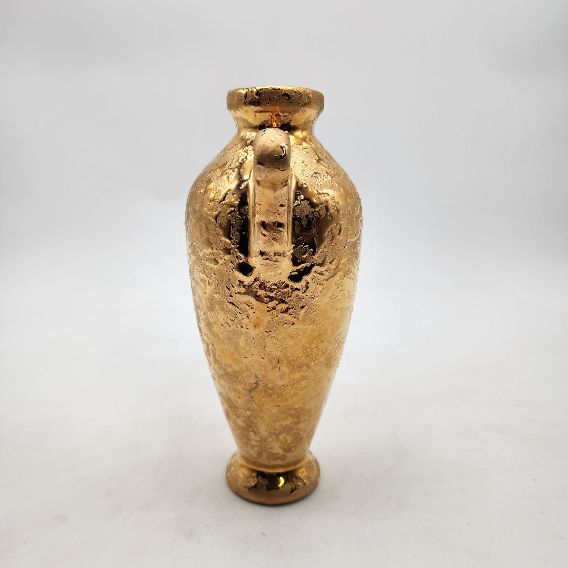 This vintage vase features an exquisite weeping gold finish, capturing the essence of timeless elegance. The albastron shape adds a touch of classic sophistication, making it a wonderful addition to any collection. Its gleaming gold hue and intricate texture reflect the light beautifully, offering a striking visual appeal.