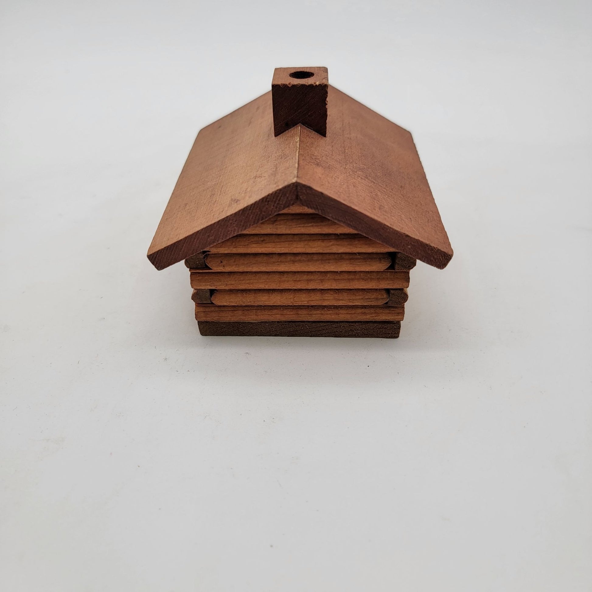 Vintage Wood Log Cabin Incense Burner With Smoking Chimney