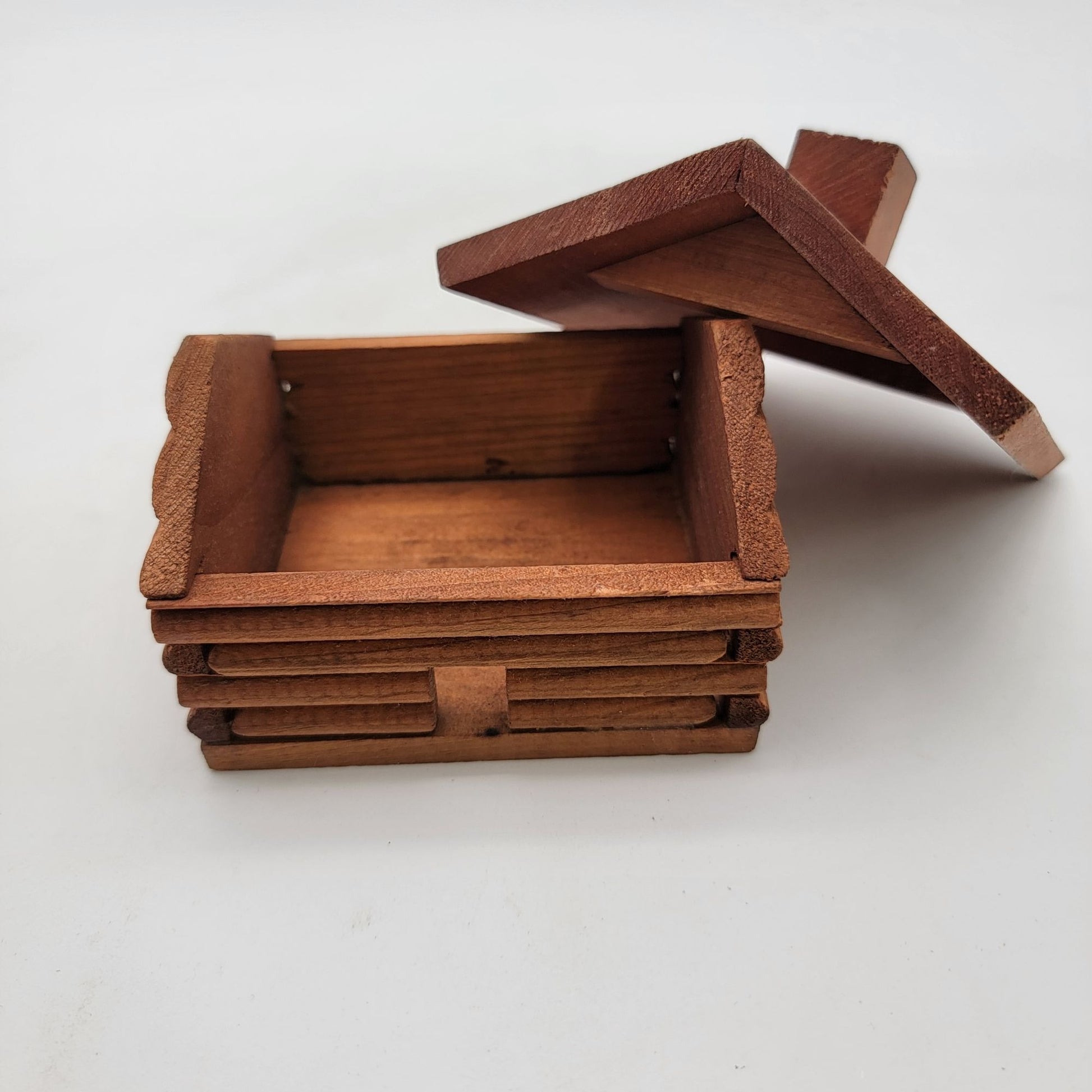 This charming vintage wood log cabin incense burner evokes nostalgia with its rustic design and functional smoking chimney. Crafted with care, it adds a warm, inviting ambiance to any space. Ideal for those who appreciate the beauty and history of handcrafted wooden pieces.