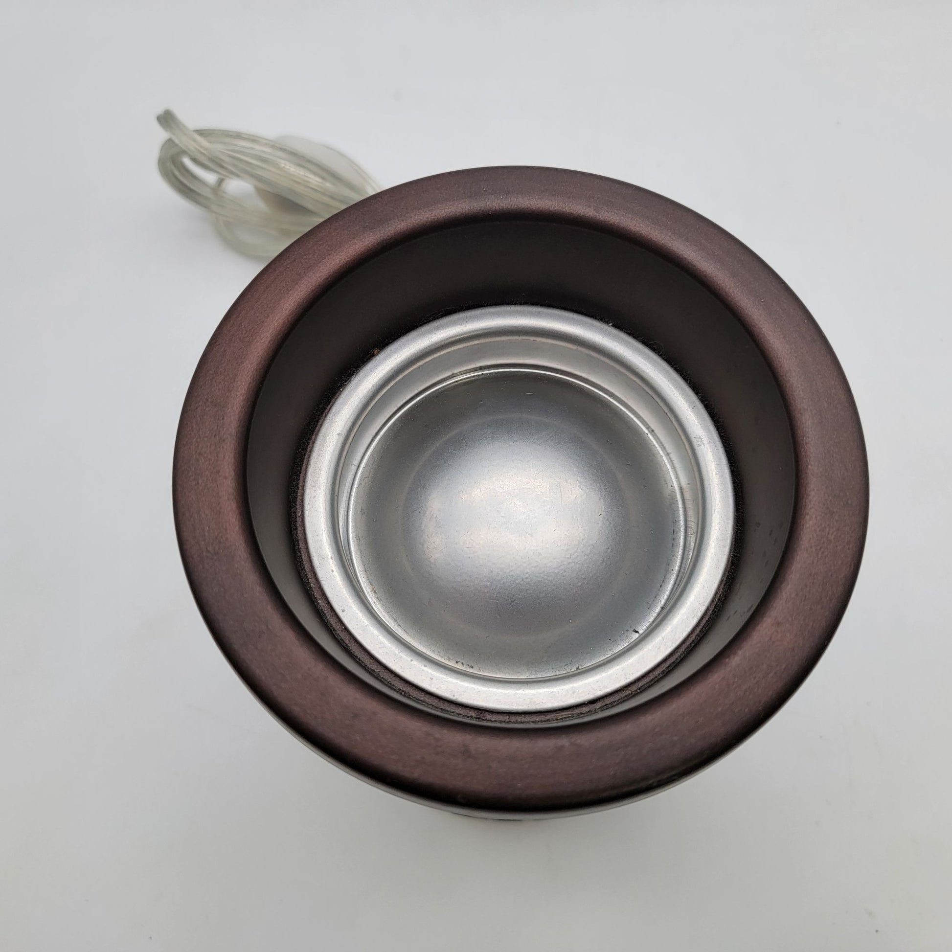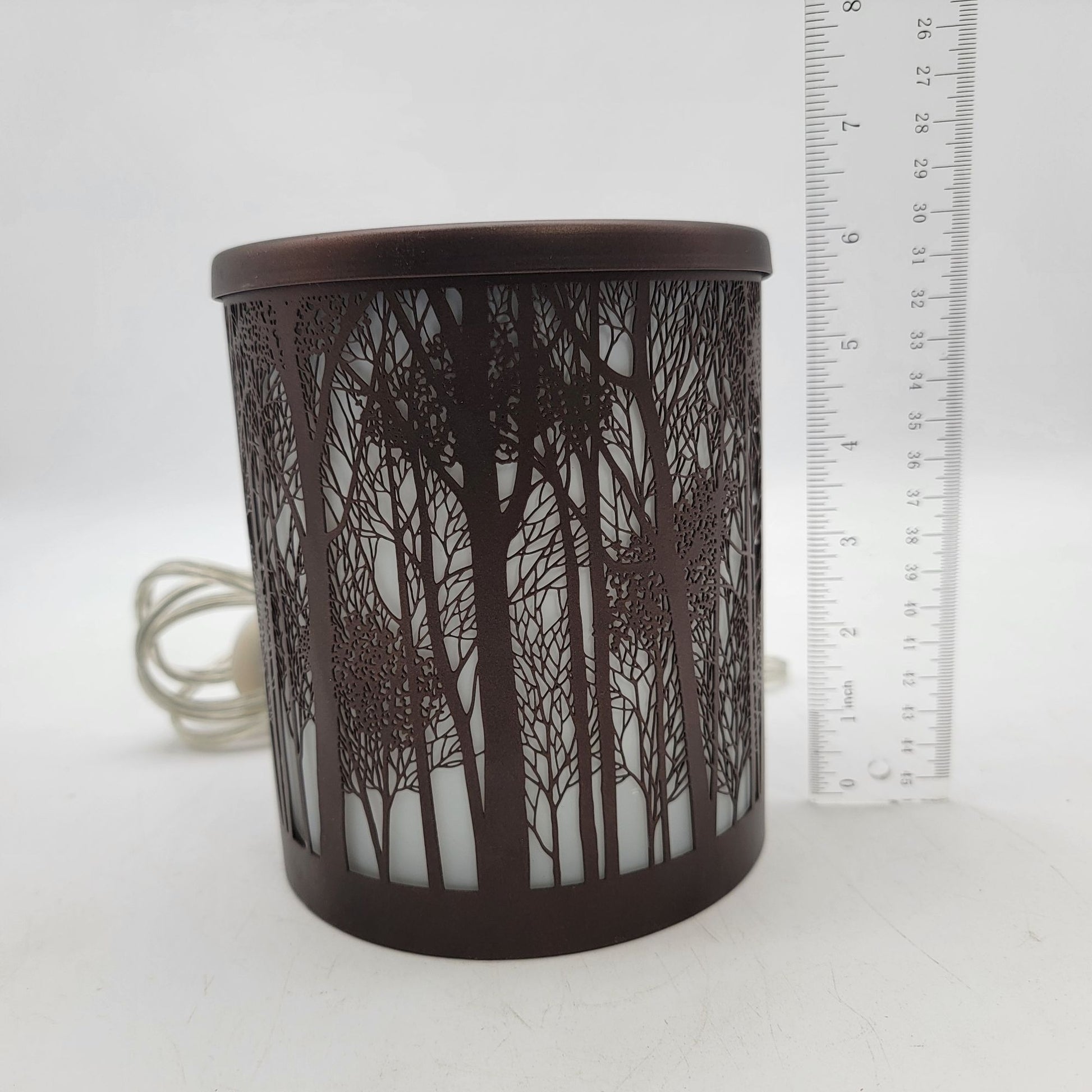 This electric wax warmer features a sophisticated forest silhouette design, combining metal and frosted glass. Designed for a clean, efficient wax melt experience.