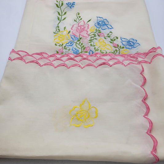 Vintage Large Embroidered Floral Tablecloth 120"x80"